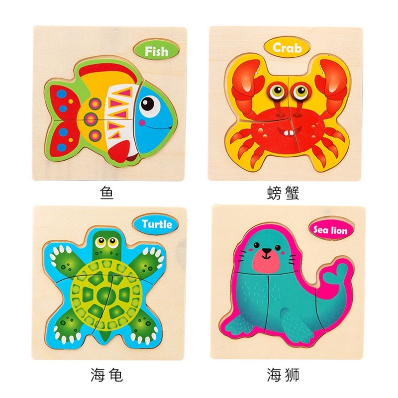 10.5cm Kids Wooden 3D Jigsaw Puzzle Cartoon Animal Traffic Car Baby Learning Educational Toys for Children