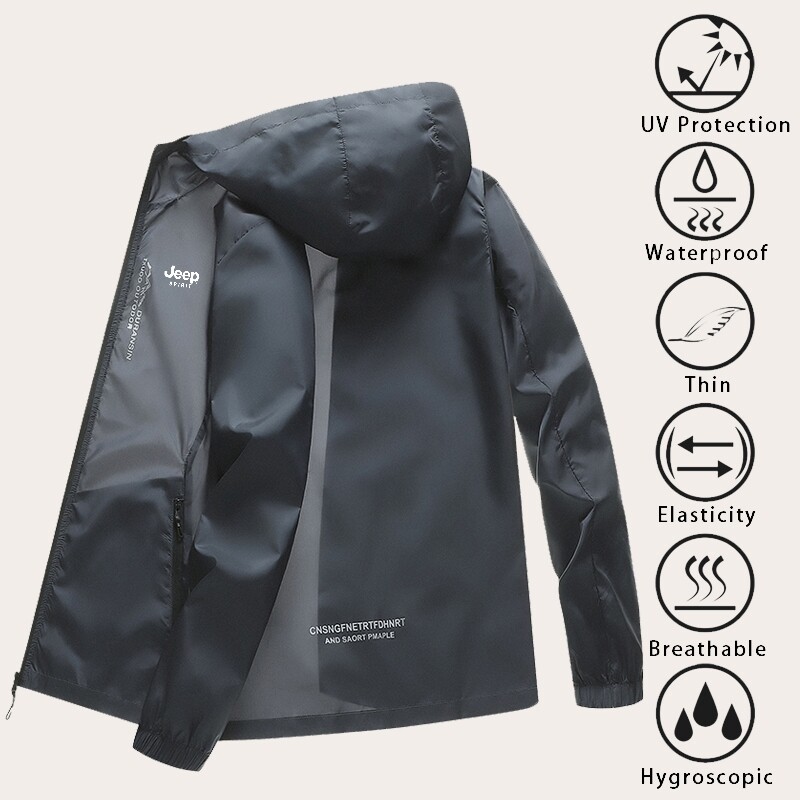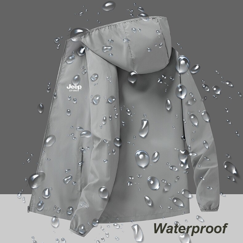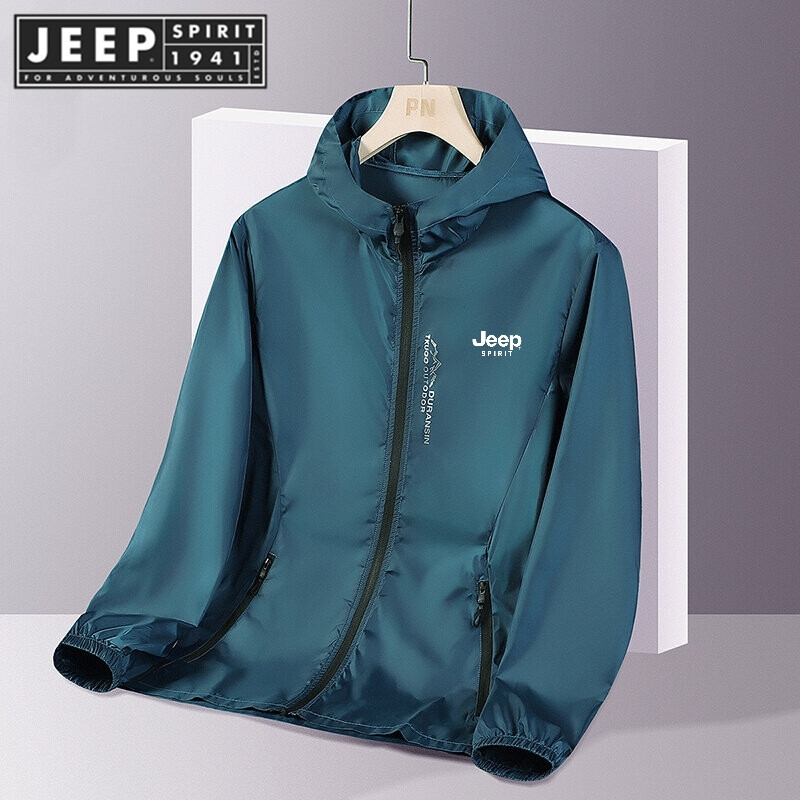 JEEP SPIRIT 1941 ESTD Summer Men's Sunscreen Suit, Sunscreen Ice Silk Jacket, Large Casual Outdoor Apparel Ultra Light Jacket, Sunscreen Breathable