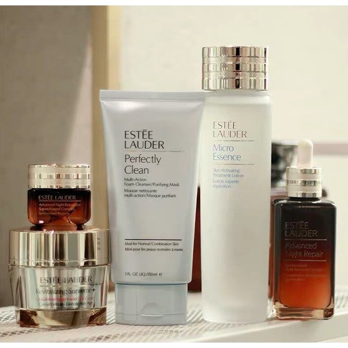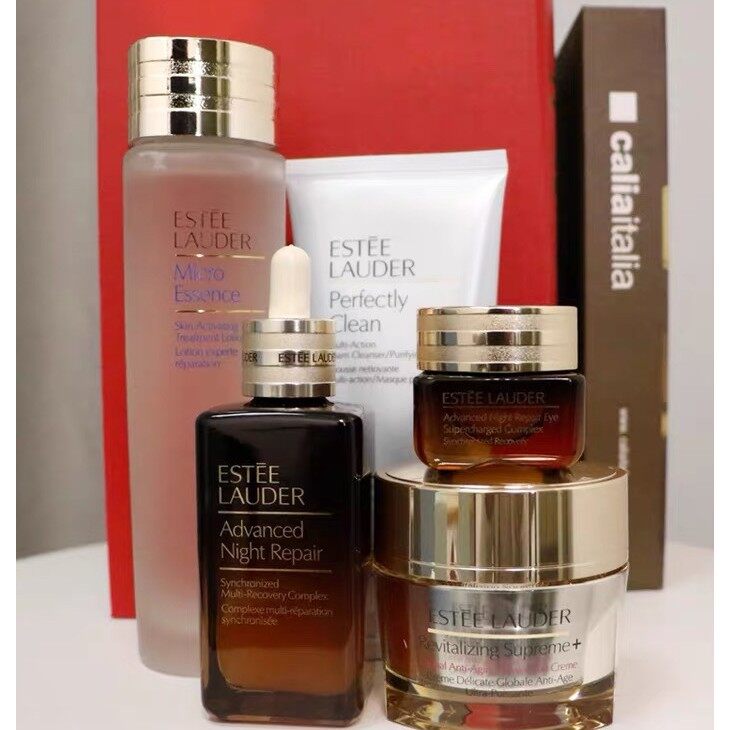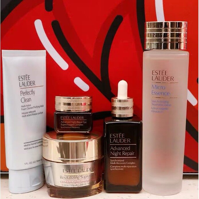 - Estee Lauder Skin Care Set 5PCS Original Liquid +Small Brown Bottle + Multi-effect Cream + Cleansing + Eye Cream