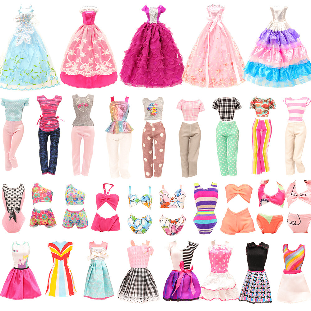 Handmade 22 Item Fashion Doll Clothes Accessories =4 Swimsuit + 2 Tops & Pants + 10 Shoes + 6 Dress for Barbie Toys for Girls