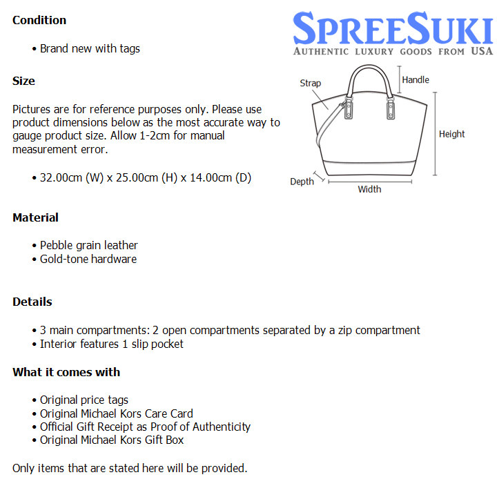 All our products are 100% authentic and purchased from Michael Kors stores in USA. We are a reputable registered business in Singapore and it is illegal to sell counterfeit goods in Singapore. This product also comes with a gift receipt which is printed by the Michael Kors store that we purchased the item from. It states the item that we purchased and the Michael Kors store that it was purchased from, proving the authenticity of the item. Buy with confidence.