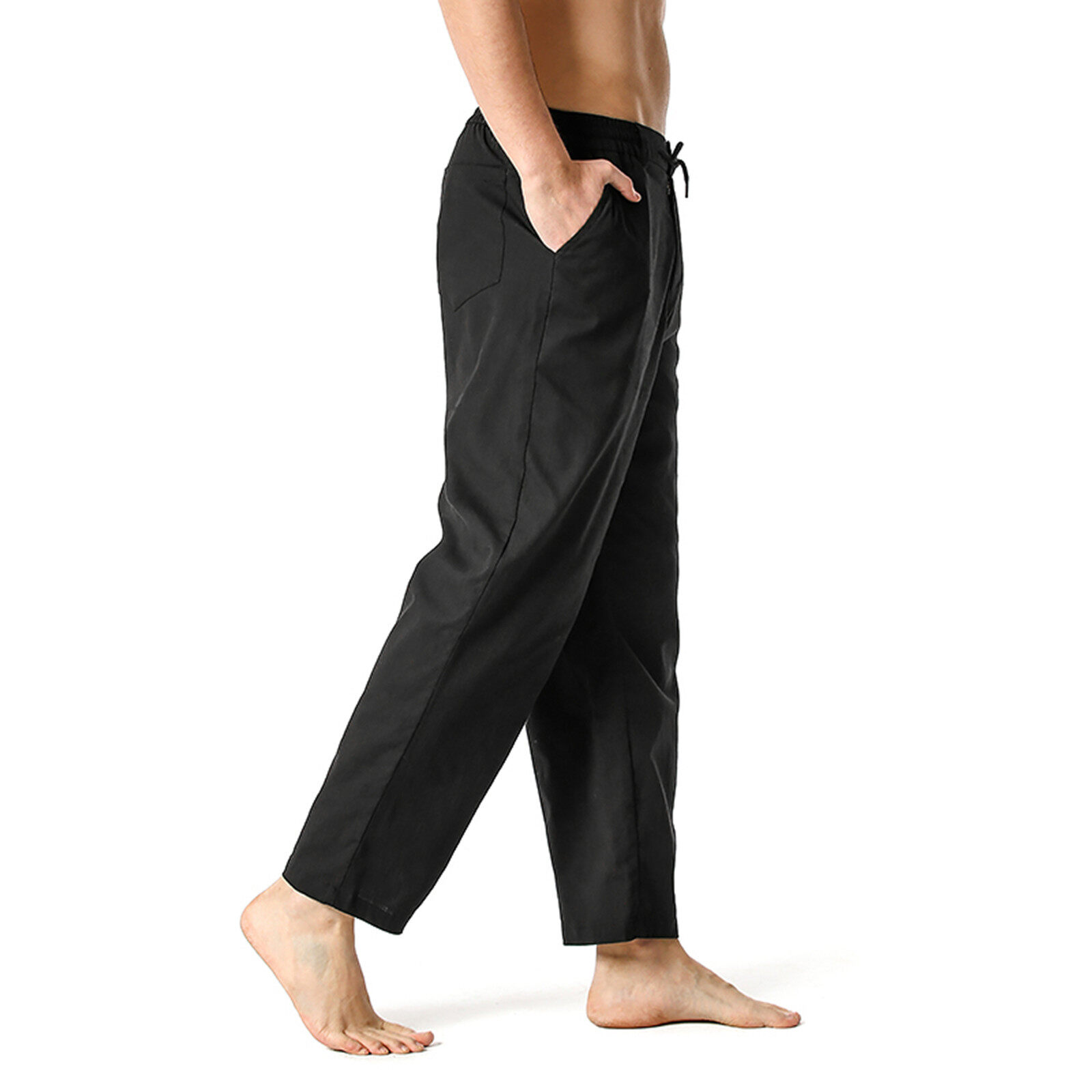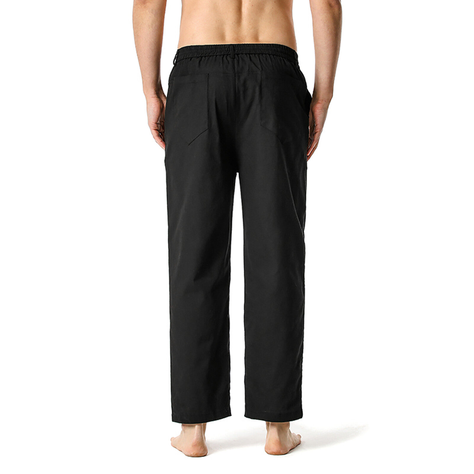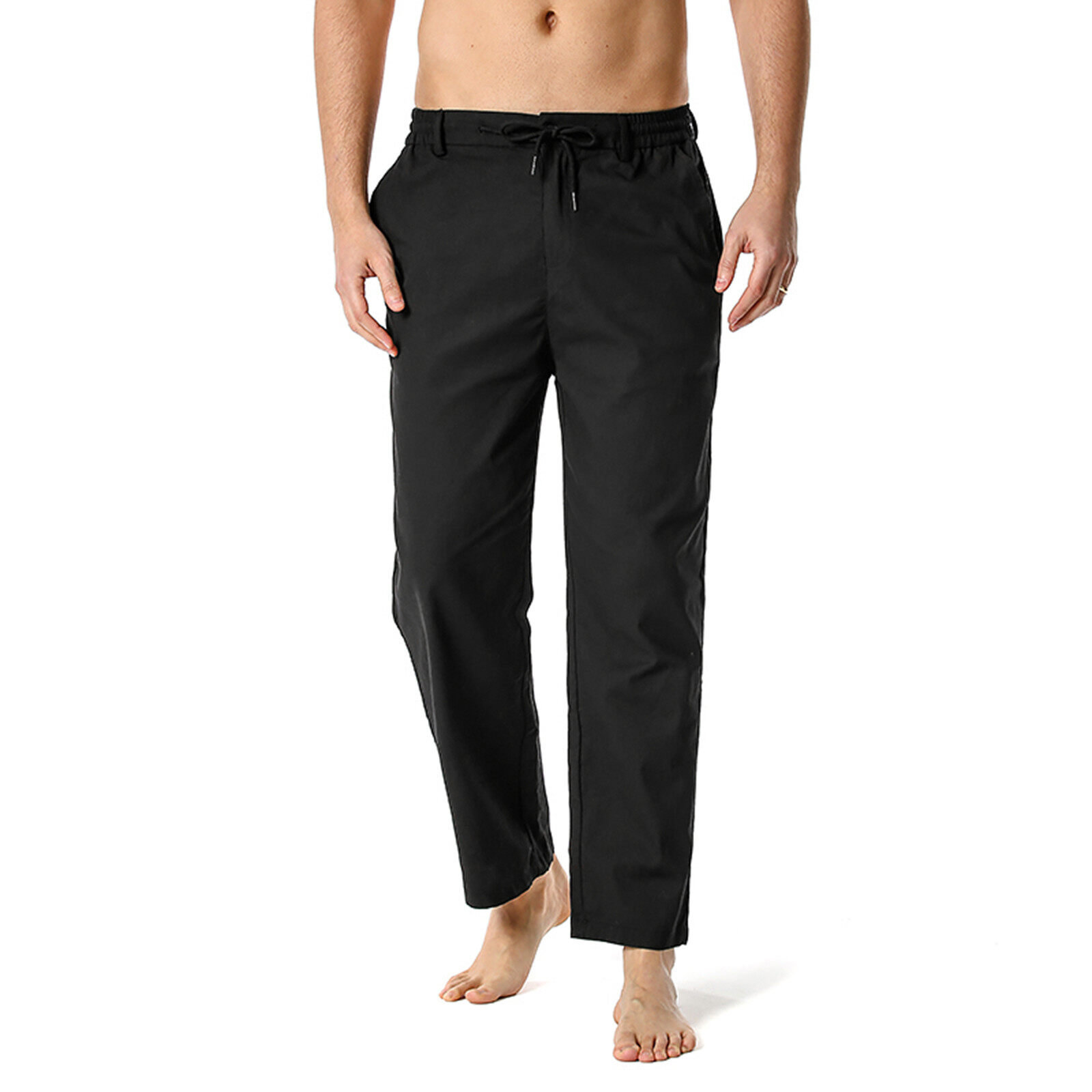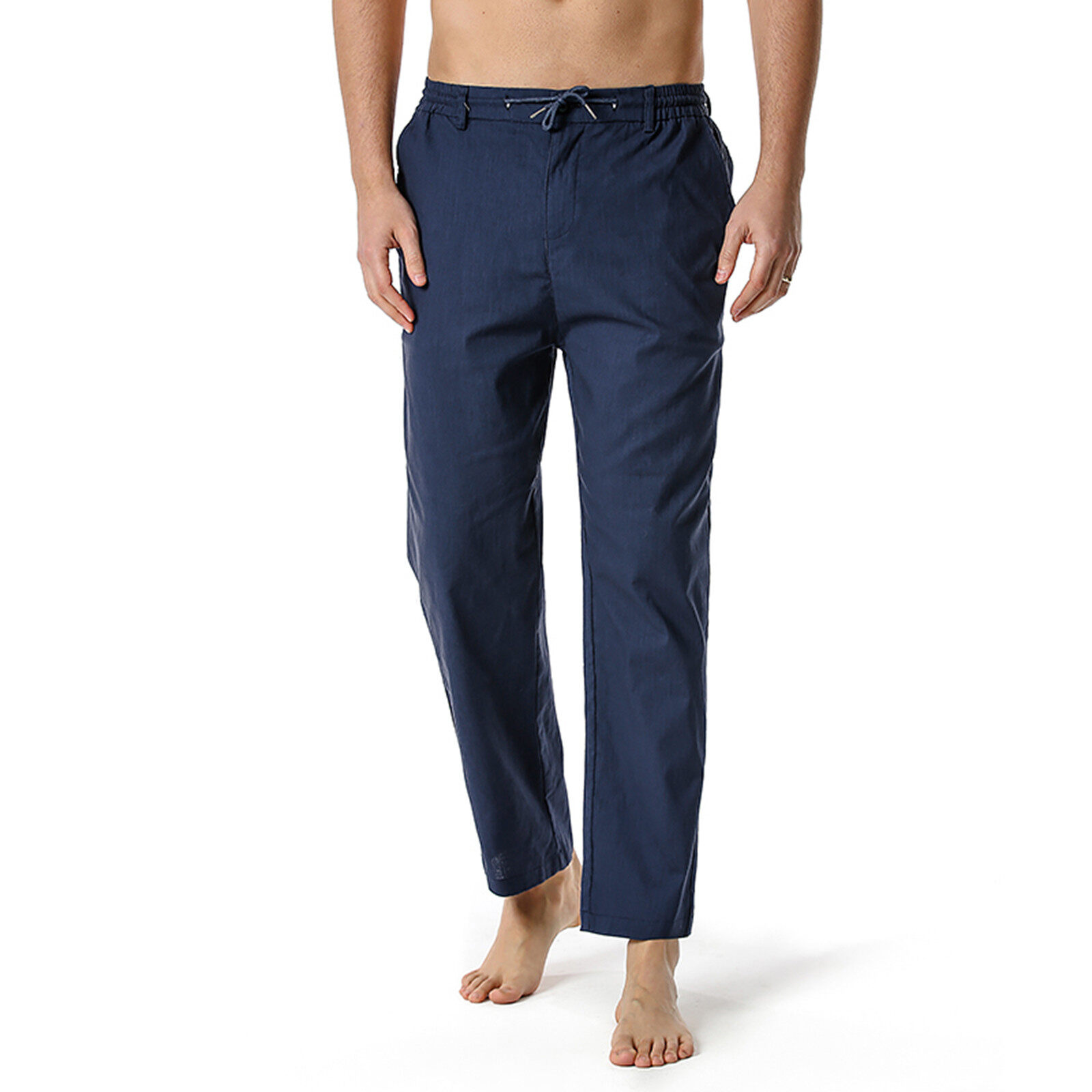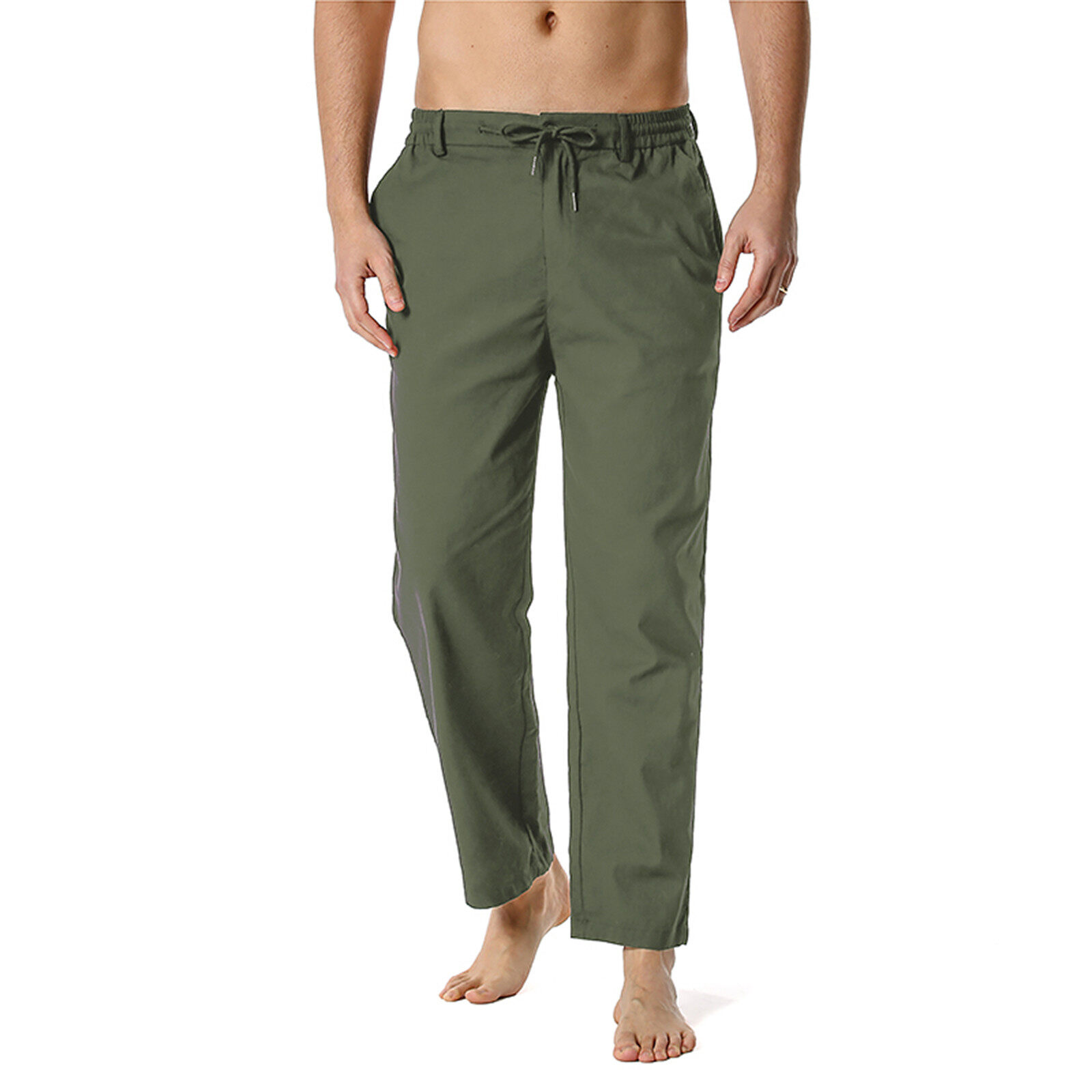 Men's Cotton-Linen Loose Casual Lightweight Elastic Waist Pants Home Pants
