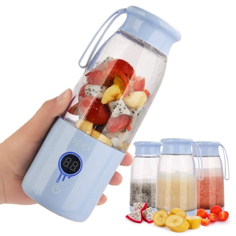 Egogo Portable Blender-Smoothie Blender,14Oz Detachable Juicer Cup For Travel Office School Home,Personal Fruits Juicer And Mixer With Lcd Display,Press Switch Design