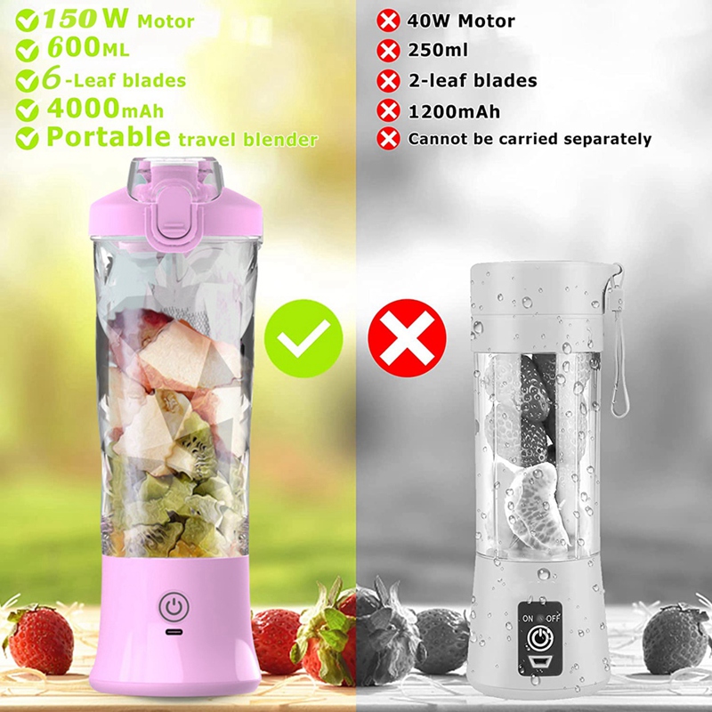 600ML Portable Blender Electric Juicers Fruit Mixers 4000MAh USB Rechargeable Smoothie Mini Blender Personal Juicer