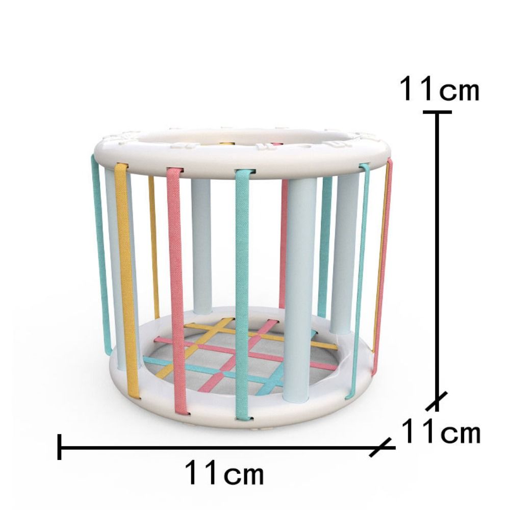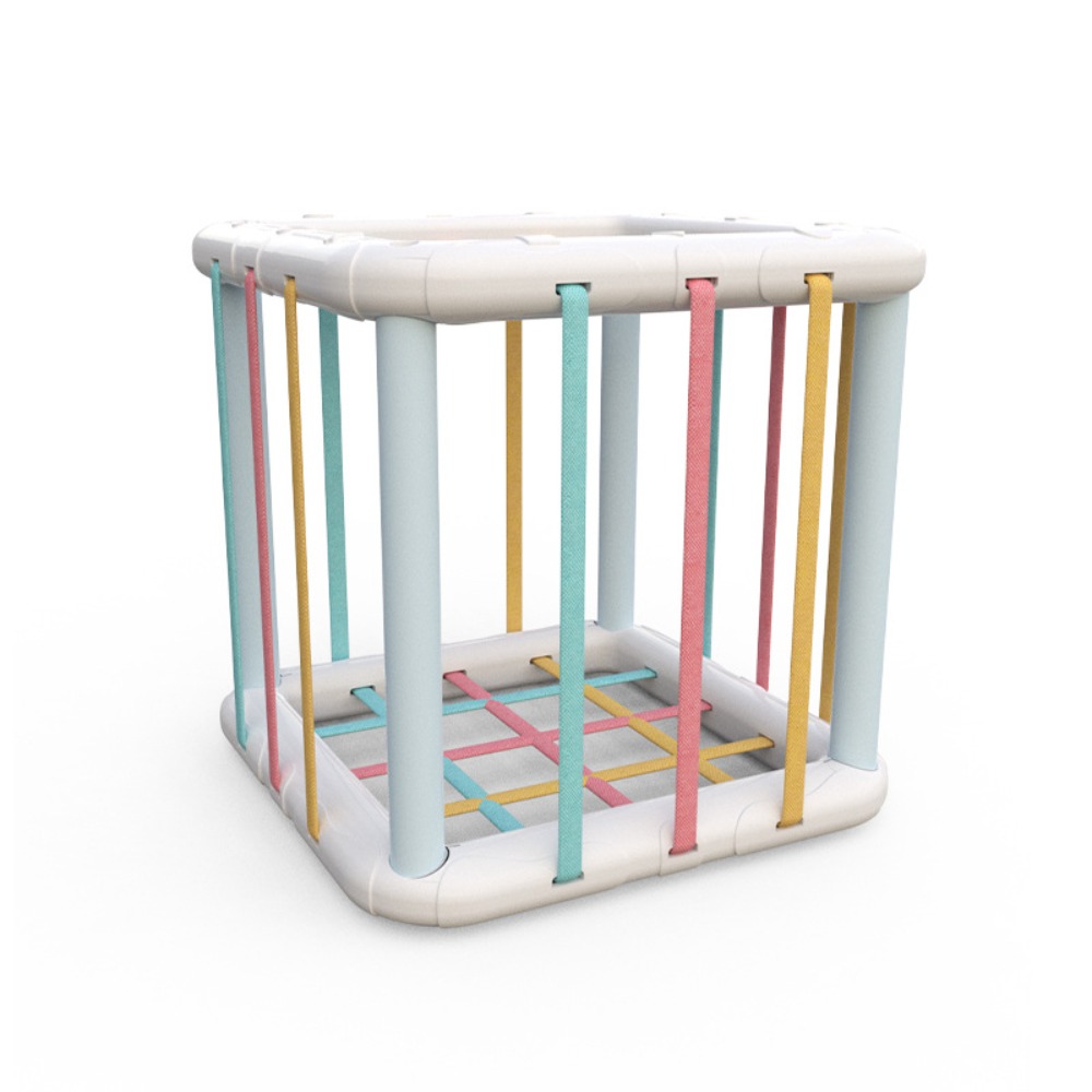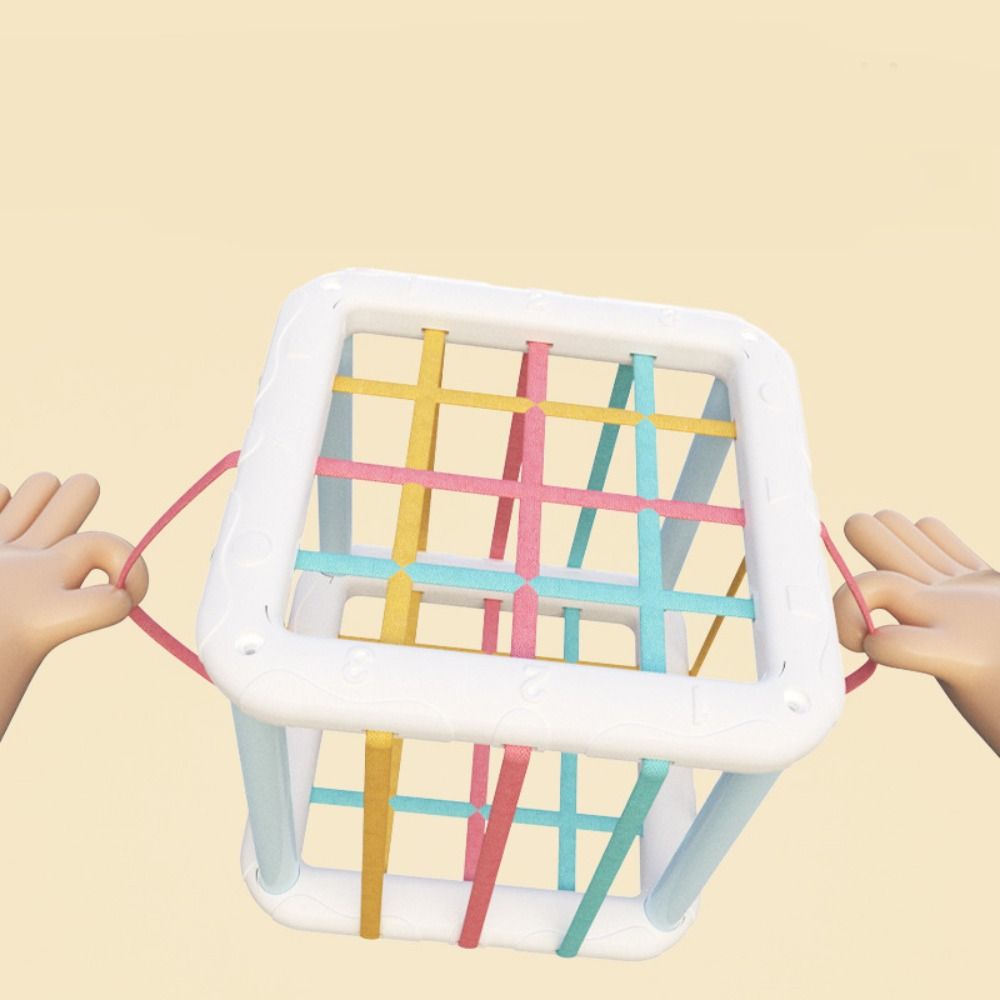 When babies put the shape blocks through the elastic bands and push them into the geometrical bins, their curiosity will stimulate them to explore actively, try and find more fun.