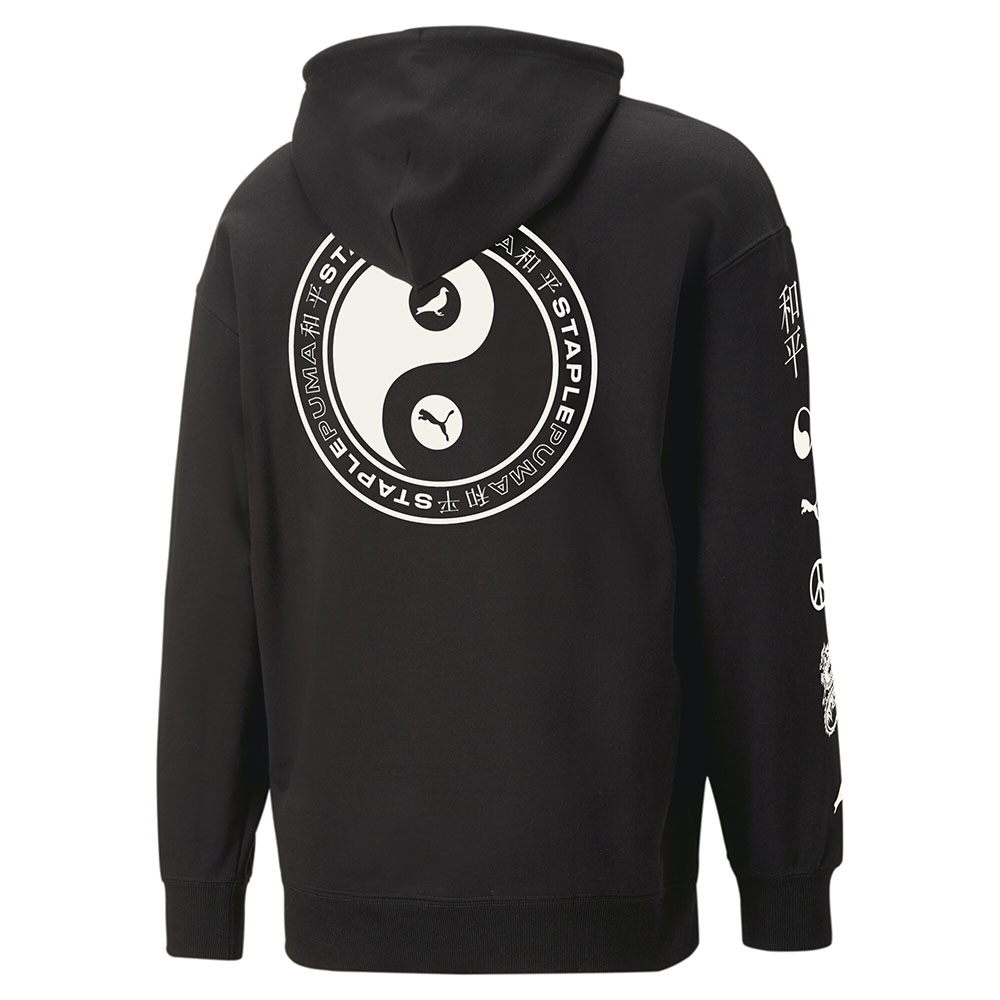 The latest PUMA x STAPLE collaboration takes inspiration from Gidra, a California newspaper founded in 1969 to be a powerful Asian American voice during the American civil rights movement Pieces from the collection combine Jeff Staple's trademark clean, thorough aesthetic, with bold colors and graphics honoring Asian American history This hoodie is no exception, with a rubber in yang print on the back that corporations both the STAPLE pixel and the PUMA Cat