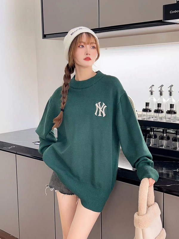 Later Version South Korea MLB Autumn and Winter New Back NY Large Standard Casual Loose Pullover Men's and Women's Knitwear Sweater