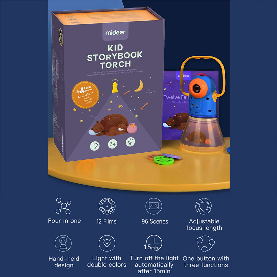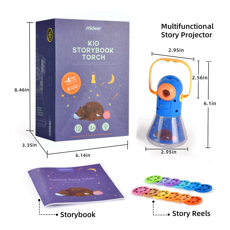 MiDeer Kids Projector Storybook Torch (12 Stories, 96 Scenes) Baby Educational Toy in Six Languages