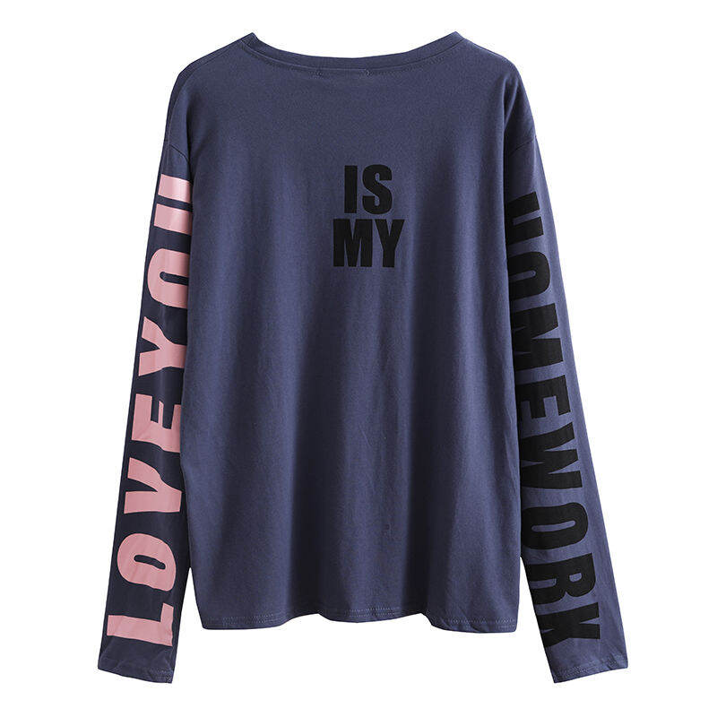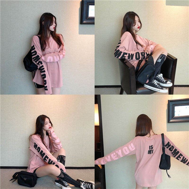 T-shirt Girls Korean Style Chic Loose Letter Printed Long-Sleeved Top Autumn New Student All-Match Slim Looking T-shirt