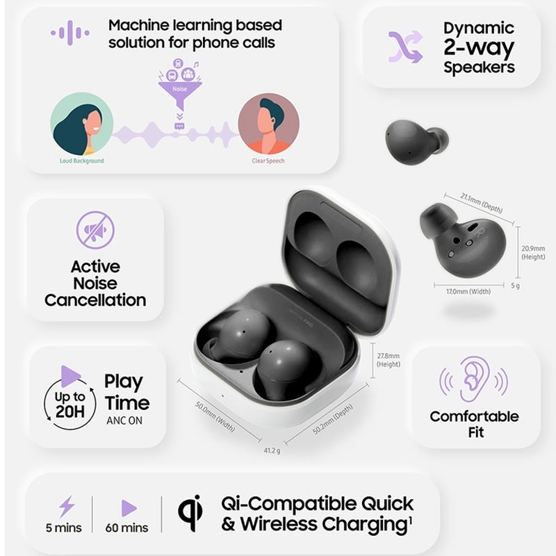 - Weight Earbud : 5.6g, Charging Case : 42.2g