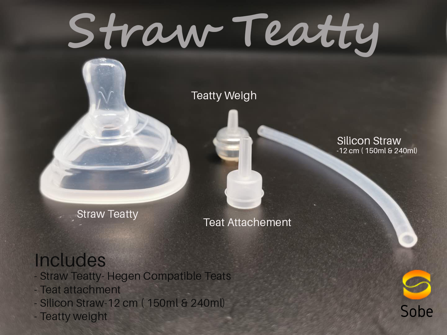 Hegen milk bottle Compatible Teatty Straw attachment. Let your baby learn to use straw.Sit and drink vs Sleep and drink. Not available for Philips Avent, Pigeon, Medela. BPA Free, Baby Straw, Baby lea