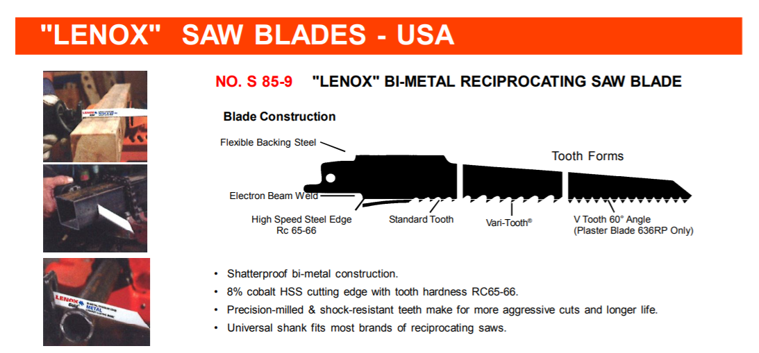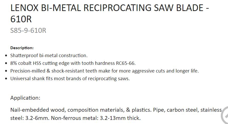 LENOX BI-METAL RECIPROCATING SAW BLADE 610R (5PCS/PACK)