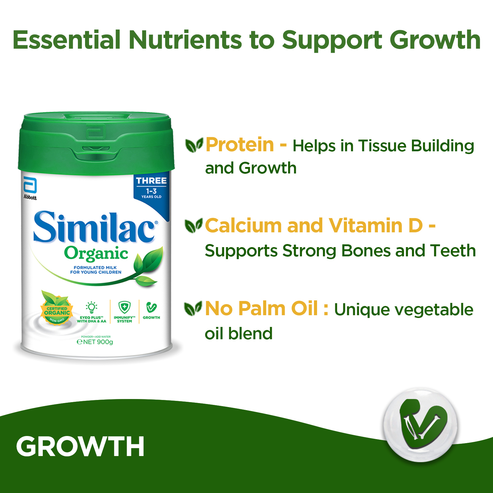 Similac Organic Milk Formula for Young Children - Stage 3 (1 - 3 Years) - 900g - Expiry Date: 1 March 2024