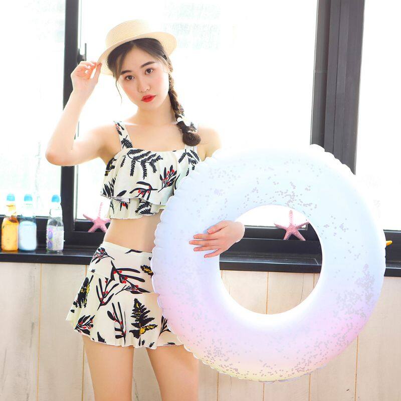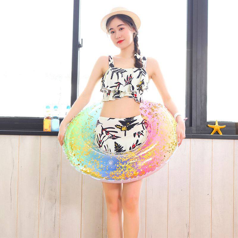 Gitter Sequined Rainbow Gradient Inflatable Swimming Ring Pool Floats Translucent Water Circle Summer Beach Party Toys