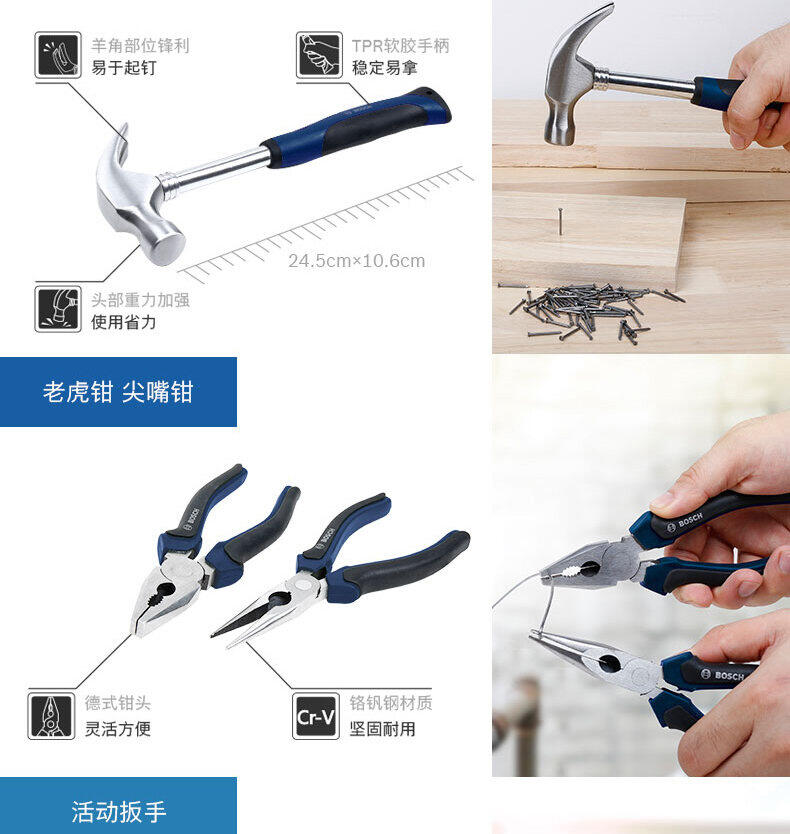 Bosch New 12 Pieces/66 Pieces/108-Piece Set Household Multi-Functional Hardware Toolbox Handmade Tool Set