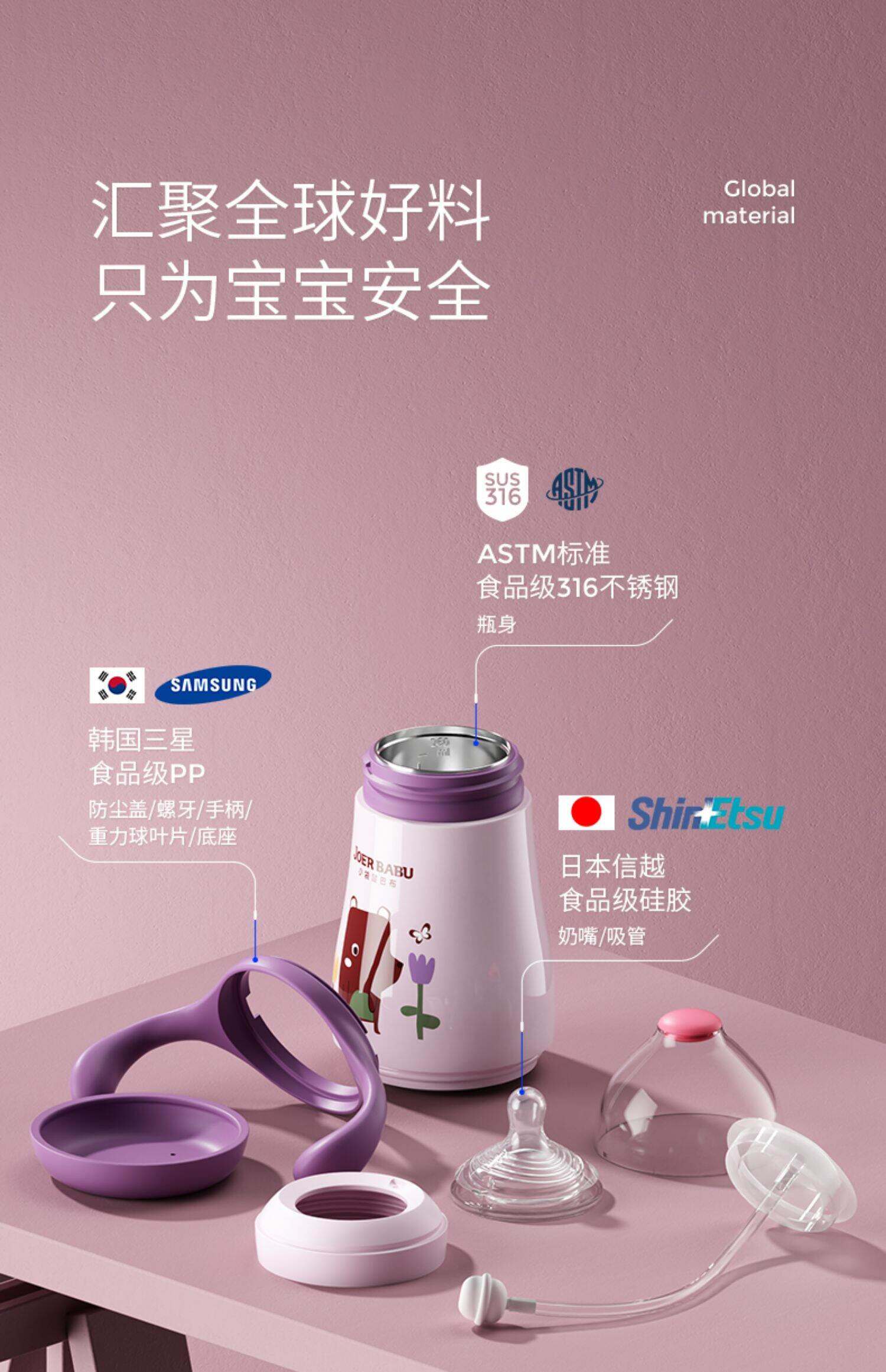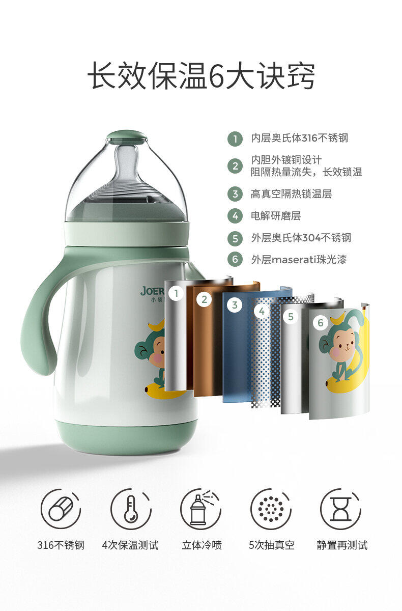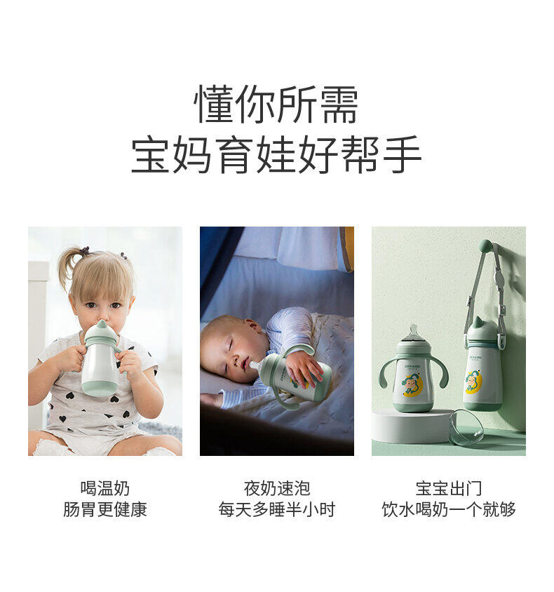 Kangaroo Babu Insulated Milk Bottle Genuine Baby Baby Night Milk with Straw Nipple Vacuum Cup Dual-Use Stainless Steel