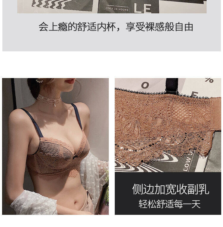 High-End Japanese and Korean Lace Sexy Underwear Women's Small Bust Push up No Steel Ring Breast Collection Adjustment Upper Support Bra Set