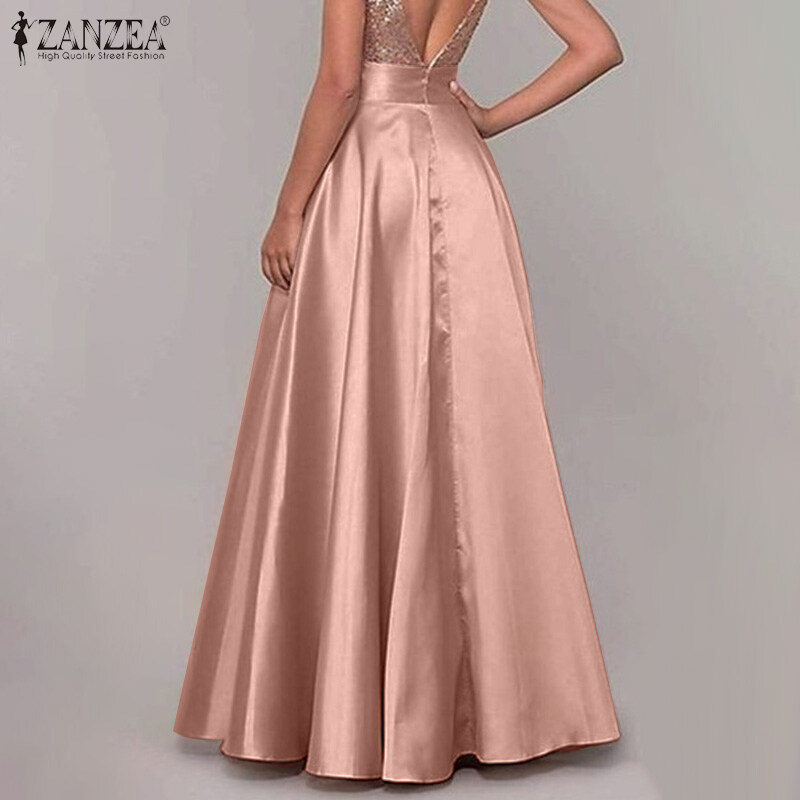 ZANZEA Womens Fashion Cocktail Party A-Line Flare Swing Skirts High Waist Plain Long Skirt