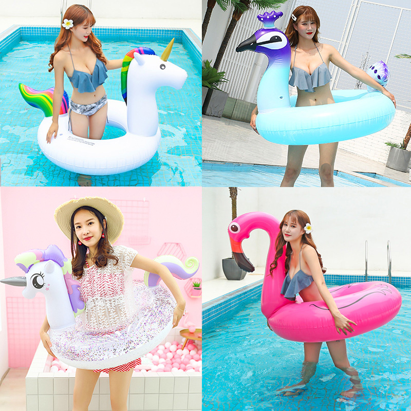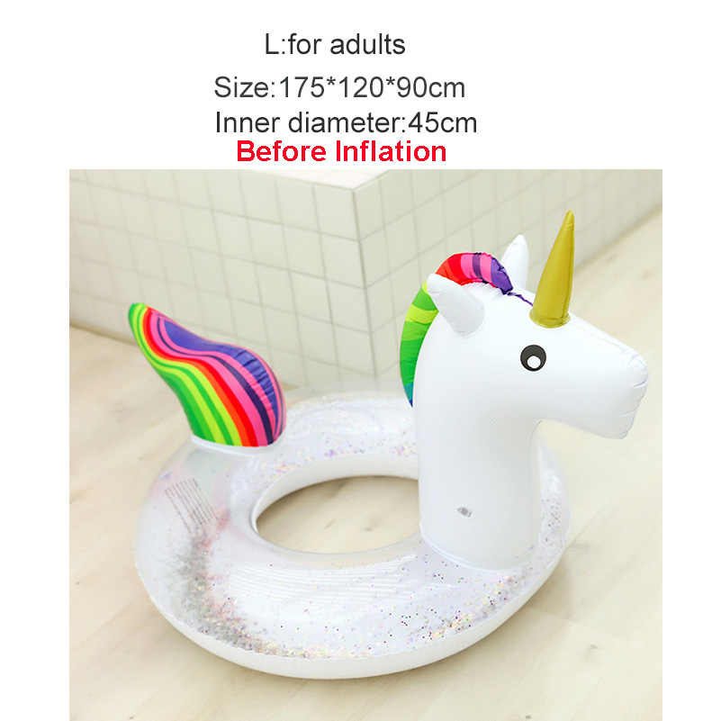 Rooxin Unicorn Flamingo Inflatable Circle Pool Float Swimming Ring for Kids Thick PVC Rubber Ring for Beach Pool Party Toy