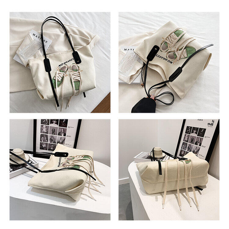 Large Capacity Fashion Big Bags Women's Bag 2023 New Versatile Internet Celebrity Canvas Tote Bag Texture Popular Shoulder Bag