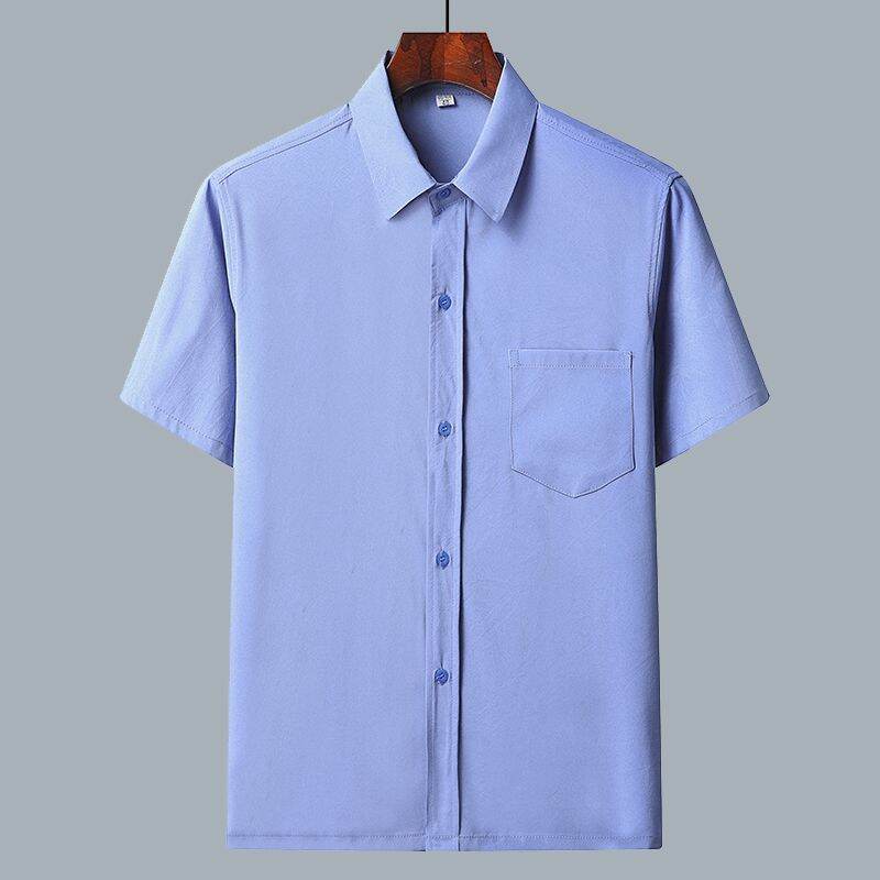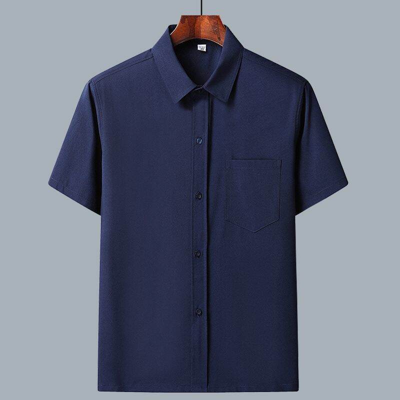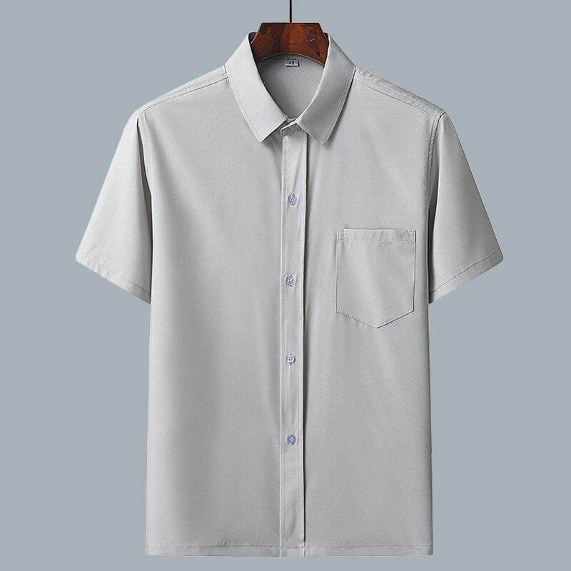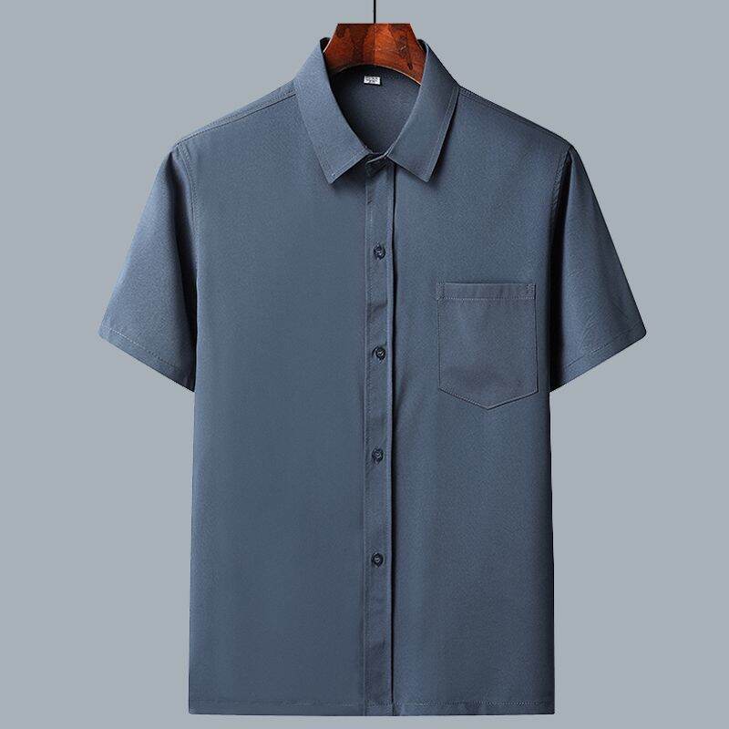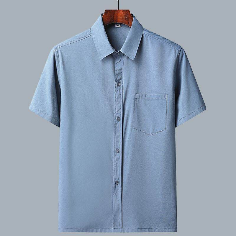 Middle-Aged and Elderly Men's Short-Sleeved Casual Shirt Summer Loose Ice Silk Button Business Shirt Old Grandpa Daddy Clothes