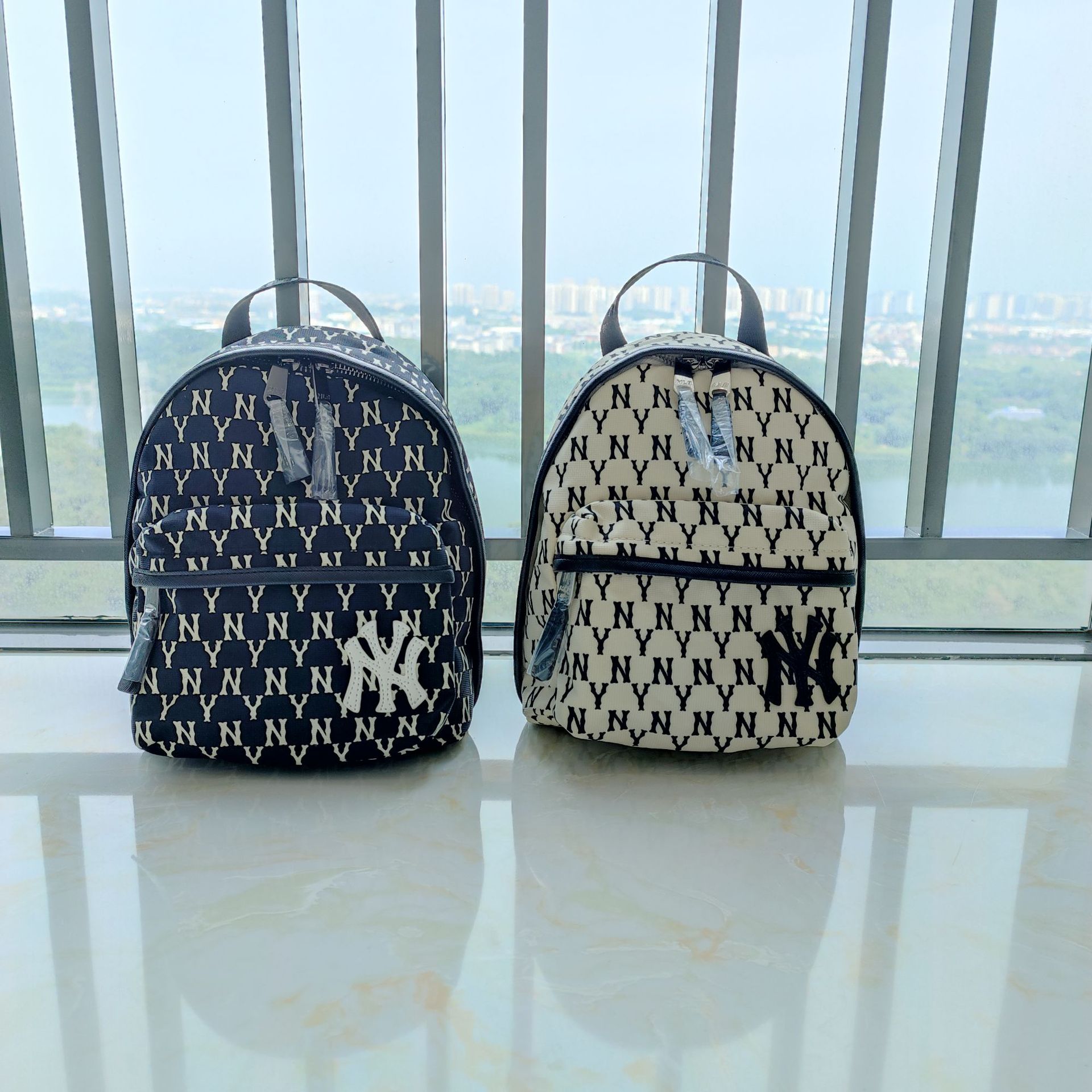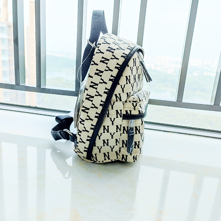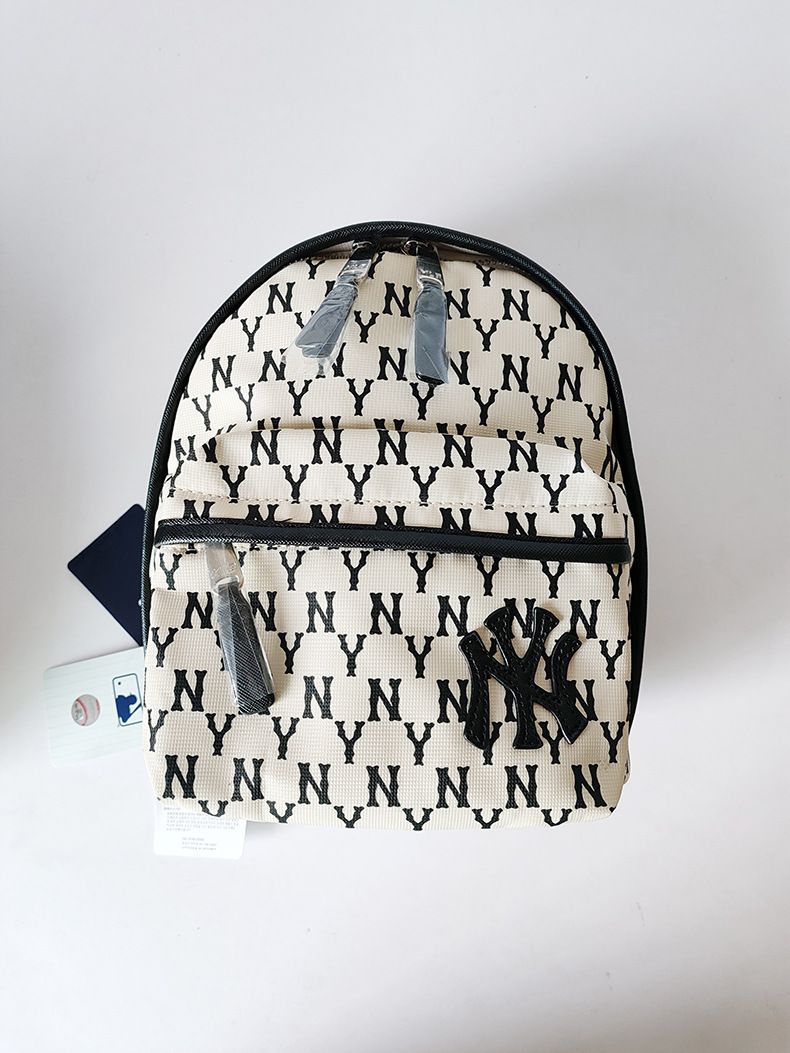 Korean-Style MLB New Large Capacity Nylon Waterproof Backpack NY Presbyopic Full Printed out Fashion All-Matching Large Backpack