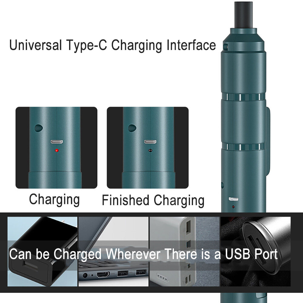 Packing List (12pcs set): 1 * Screwdriver 1 * Type-C Cable 7 * Different Screwdriver Bits 4 * Extension Rod 1 * Magnetizer