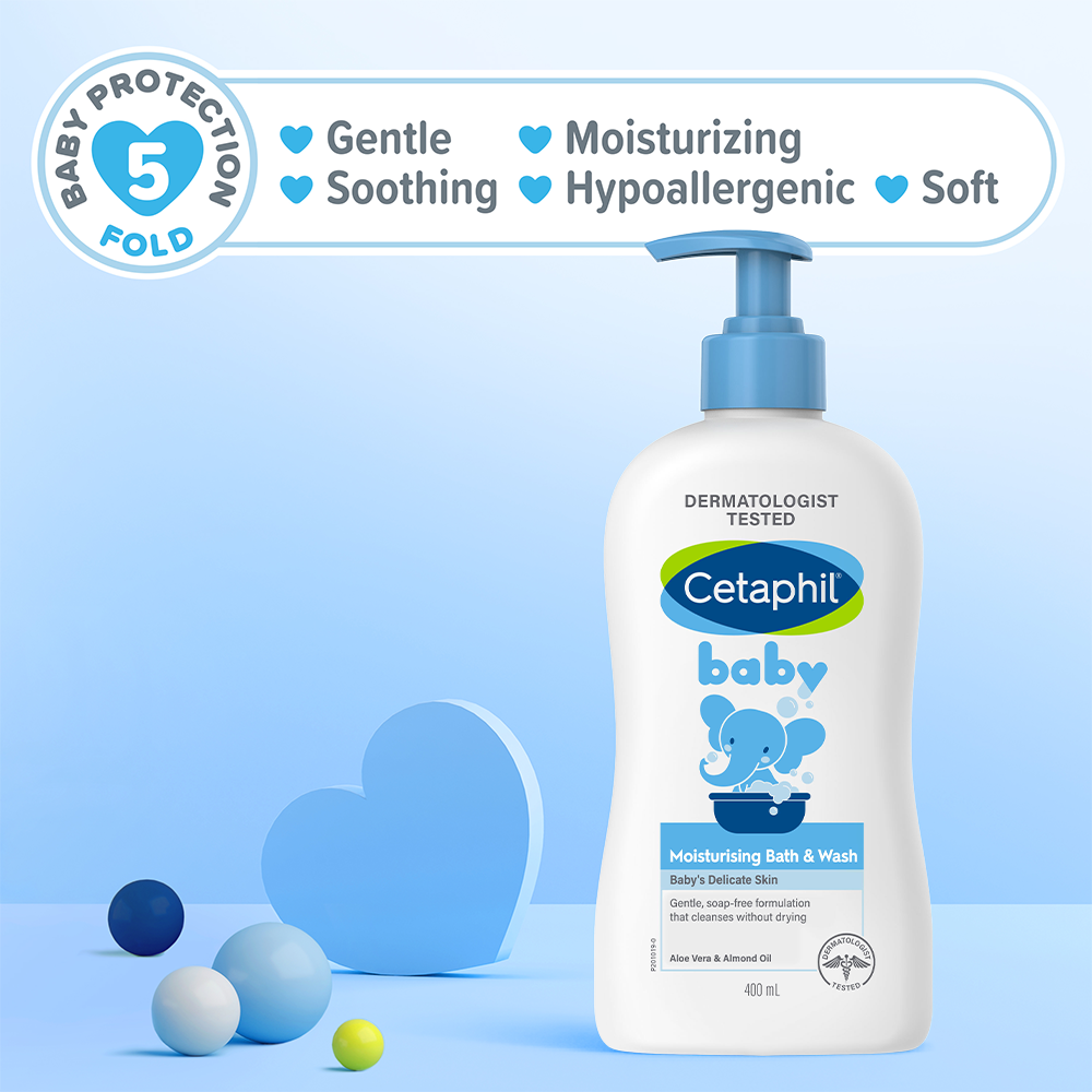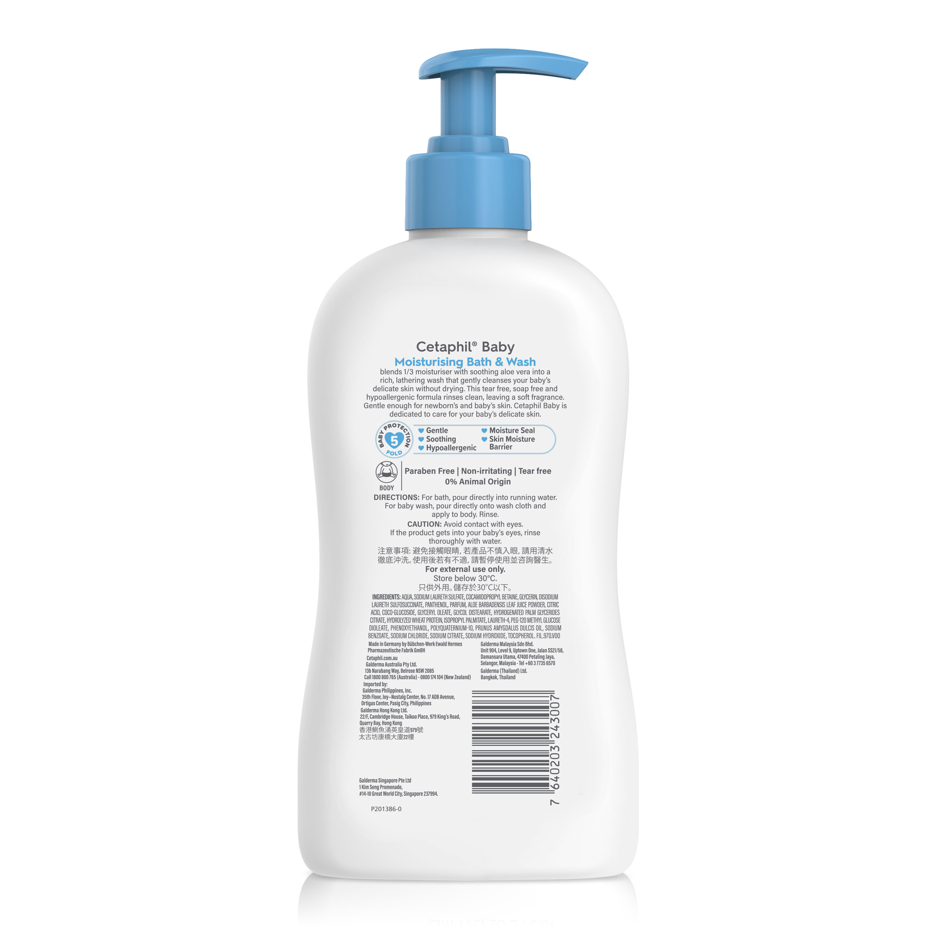 CETAPHIL BABY Ultra Moisturizing Bath & Wash with Aloe Vera and Almond Oil: This rich, lathering wash gently cleanses and protects baby's delicate skin from dryness. Its formula blends 1/3 moisturiser with soothing aloe vera and almond oil, to moisturise baby's skin as it cleanses. This tear free and soap free formula rinses clean, leaving a soft fragrance. The hypoallergenic and paraben free formula is suitable for newborns, dermatologist tested and clinically proven to be gentle on sensitive skin. Give your baby's skin 5 fold protection with CETAPHIL: gentle, soothing, moisture seal, hypoallergenic and supports their natural skin barrier.