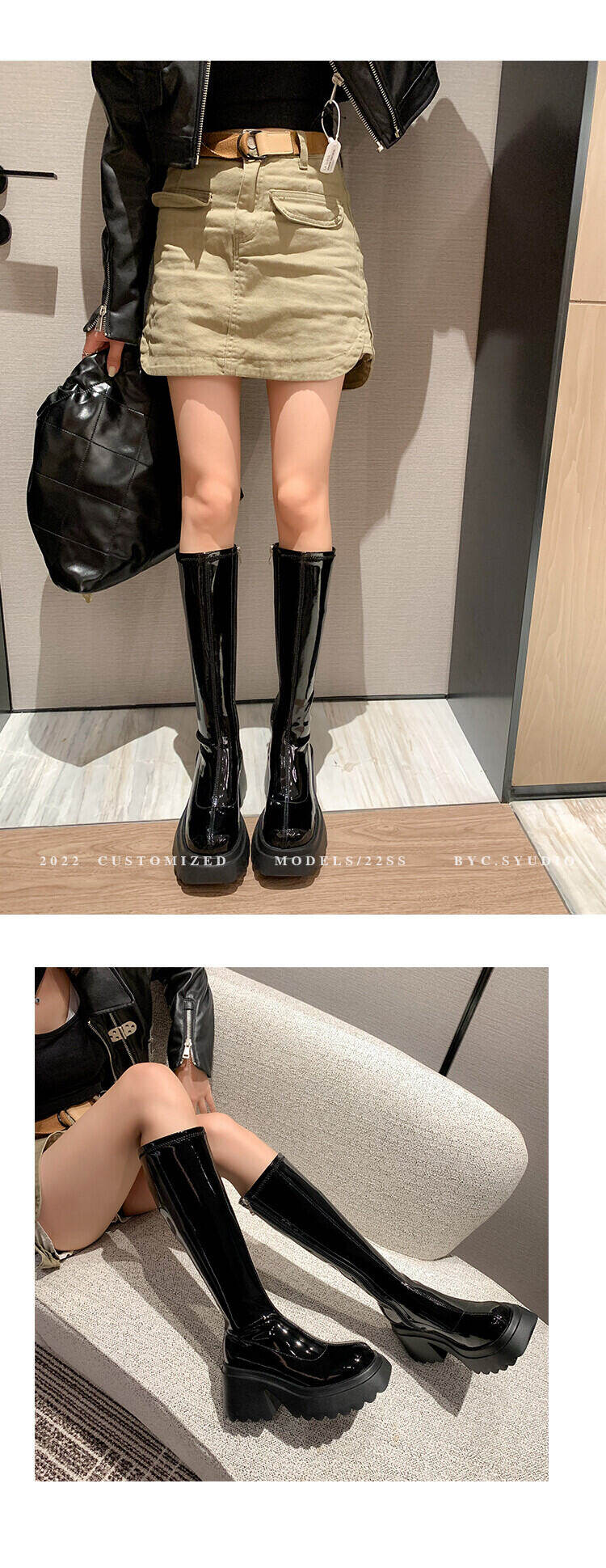 My Erlin Small Height Increased Stretch Boots Women's Bag Leg Slimming Platform Platform over the Knee Boots Platform Knight Boots