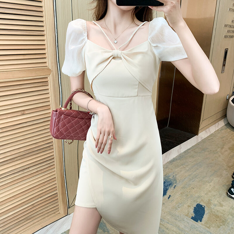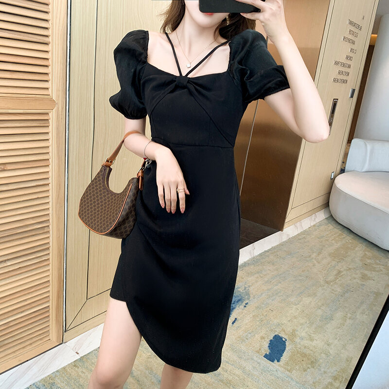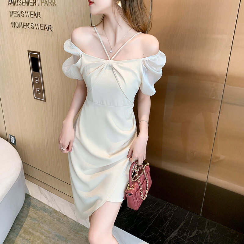 2023 High-End Summer New Women's Clothing High-Grade Irregular Skirt off-Shoulder Halter Puff Sleeve Dress
