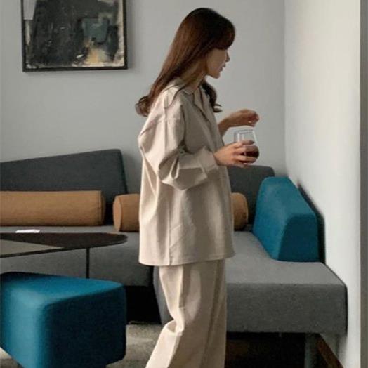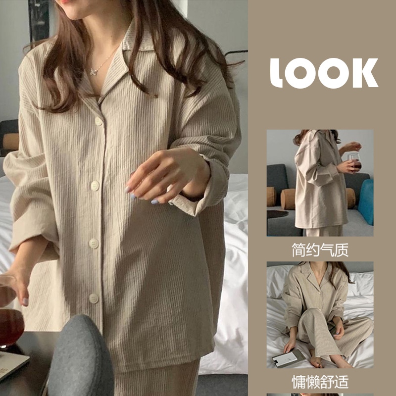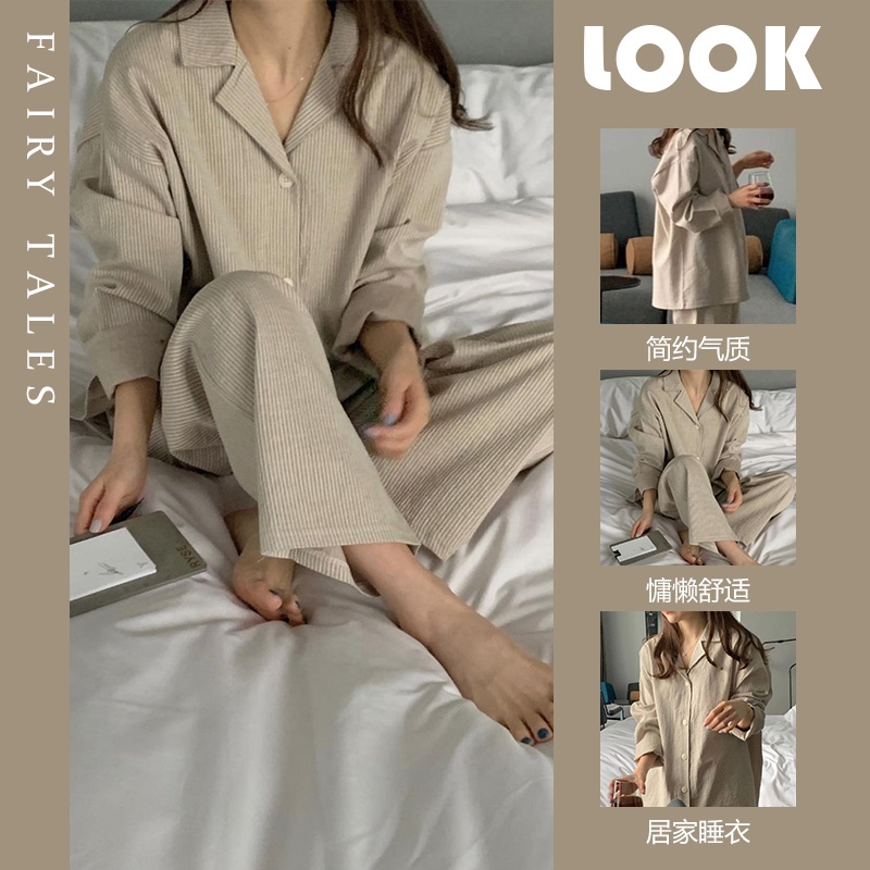 Ladies underwear Pure cotton pajamas ladies spring and autumn long-sleeved leisure large size high-end solid color cotton home service suit can be worn outside