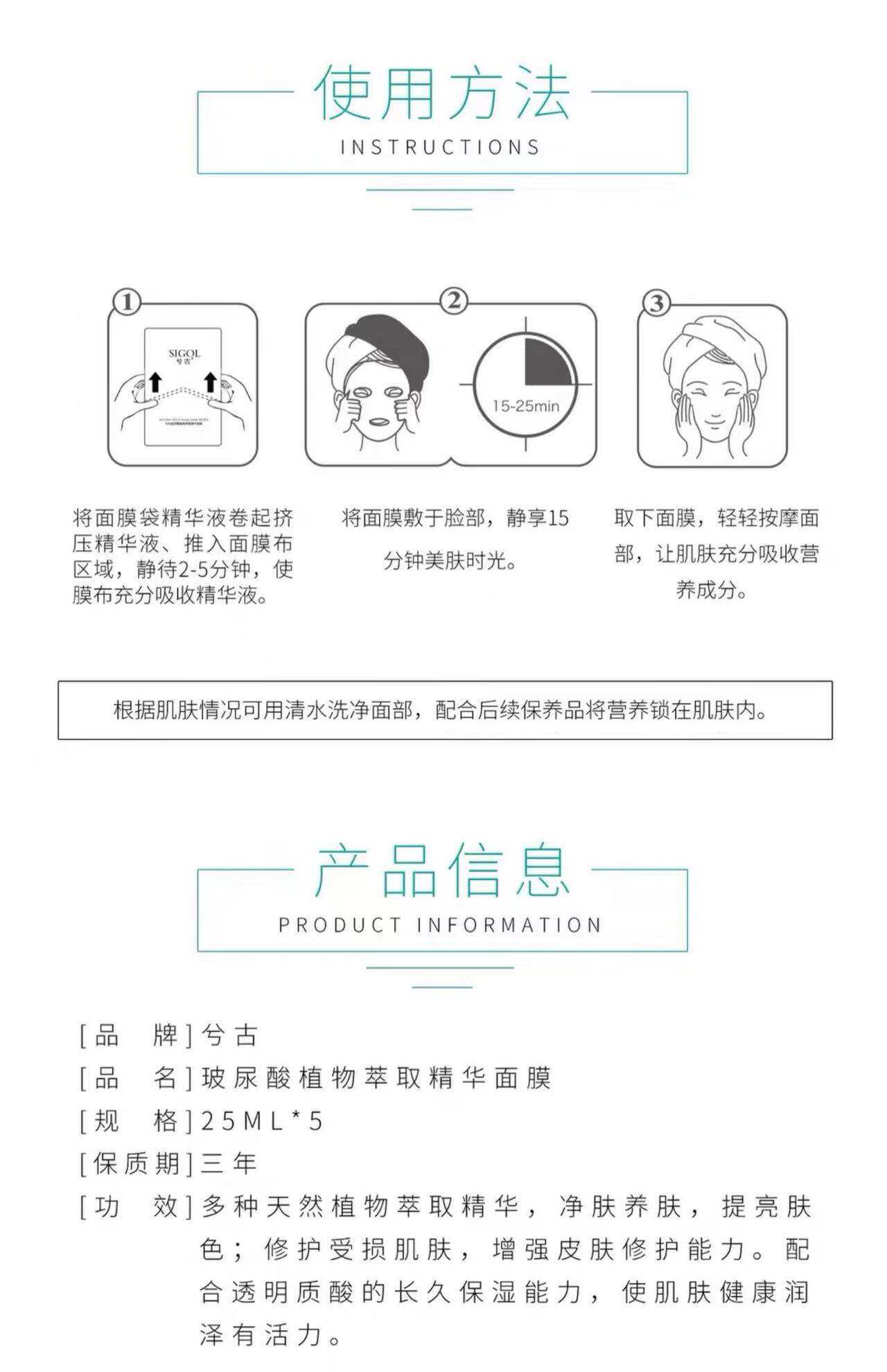 Xigu Sigol Hyaluronic Acid Plant Extract Facemask Moisturizing Brightening and Hydrating Firming Shrink Pores
