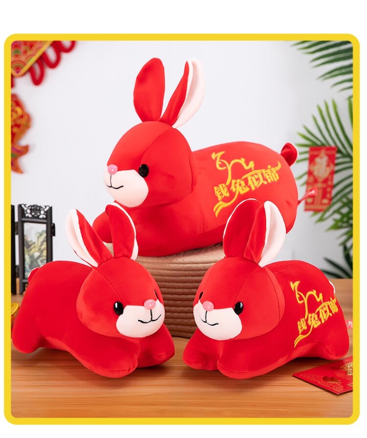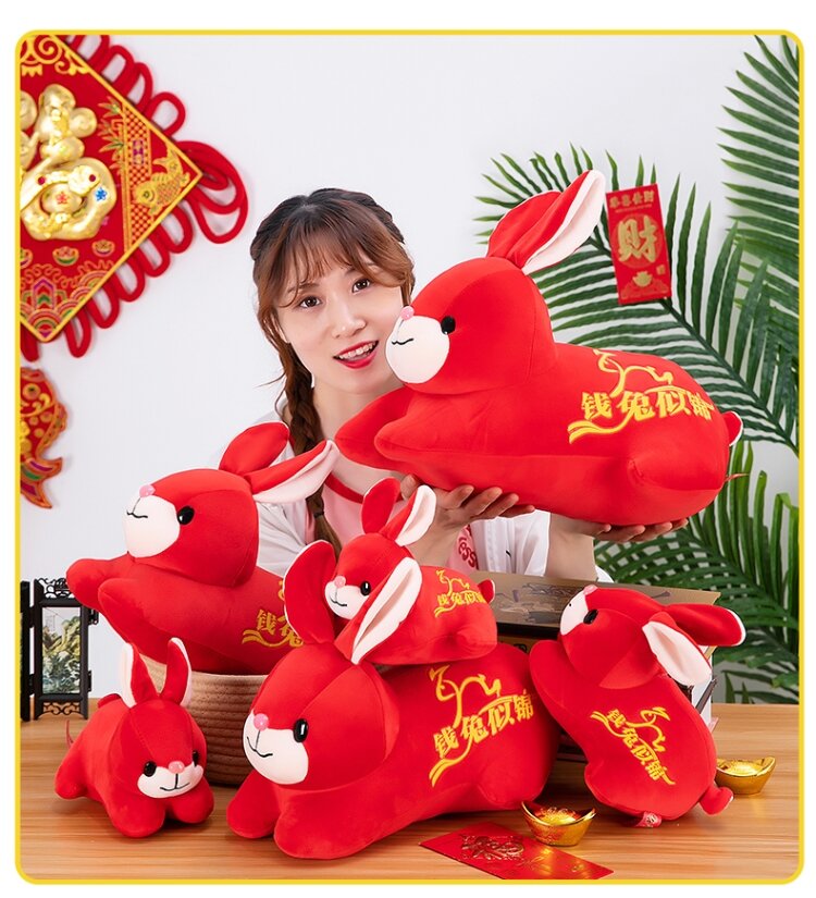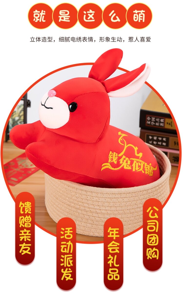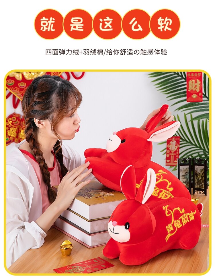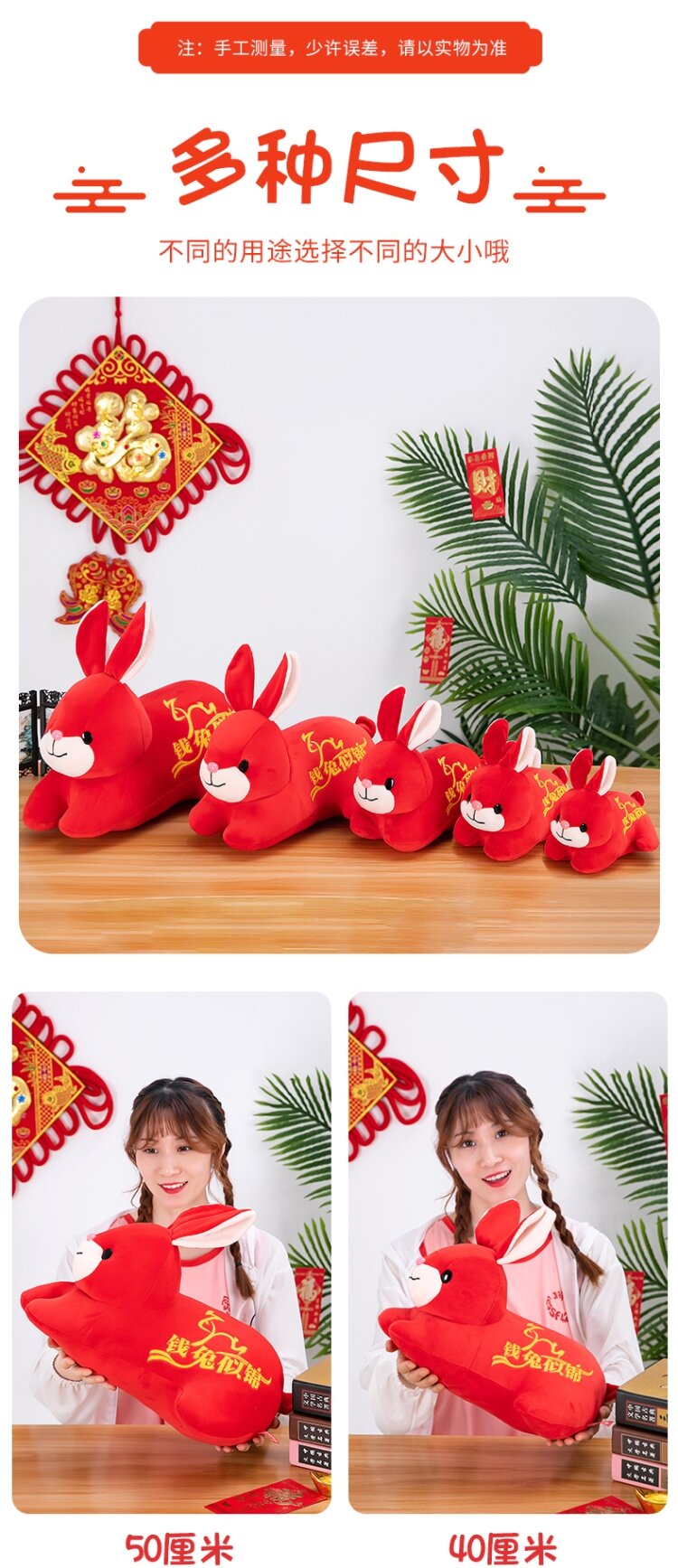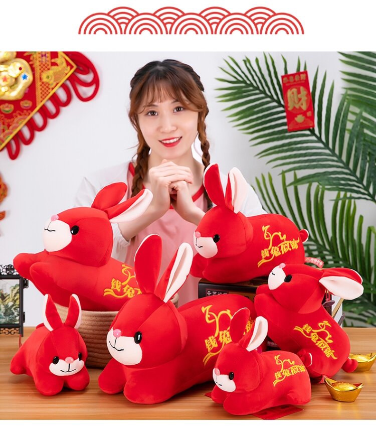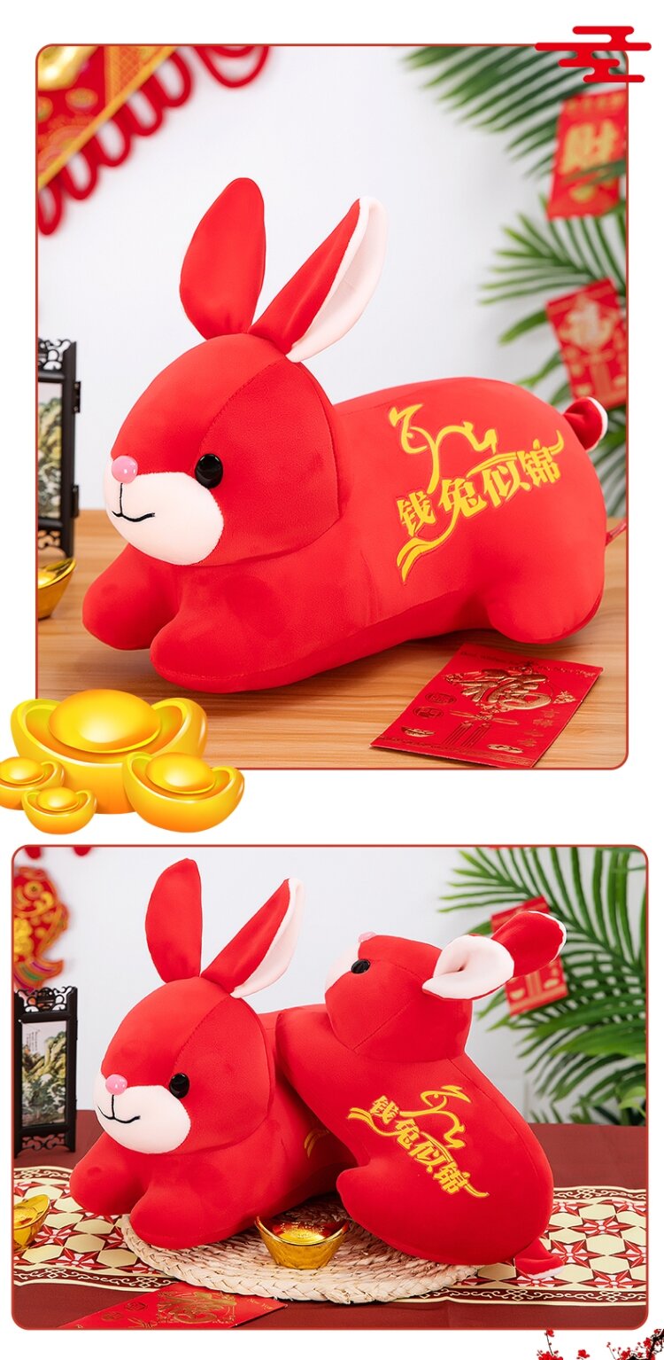 Simulation Small Lying Rabbit Red Plush Toy Rabbit Doll Annual Meeting Mascot Chinese Zodiac Sign of Rabbit Doll Annual Meeting Activity