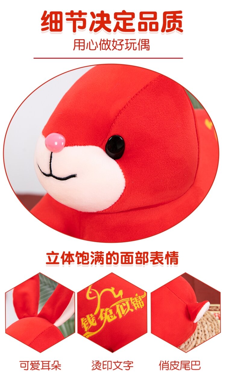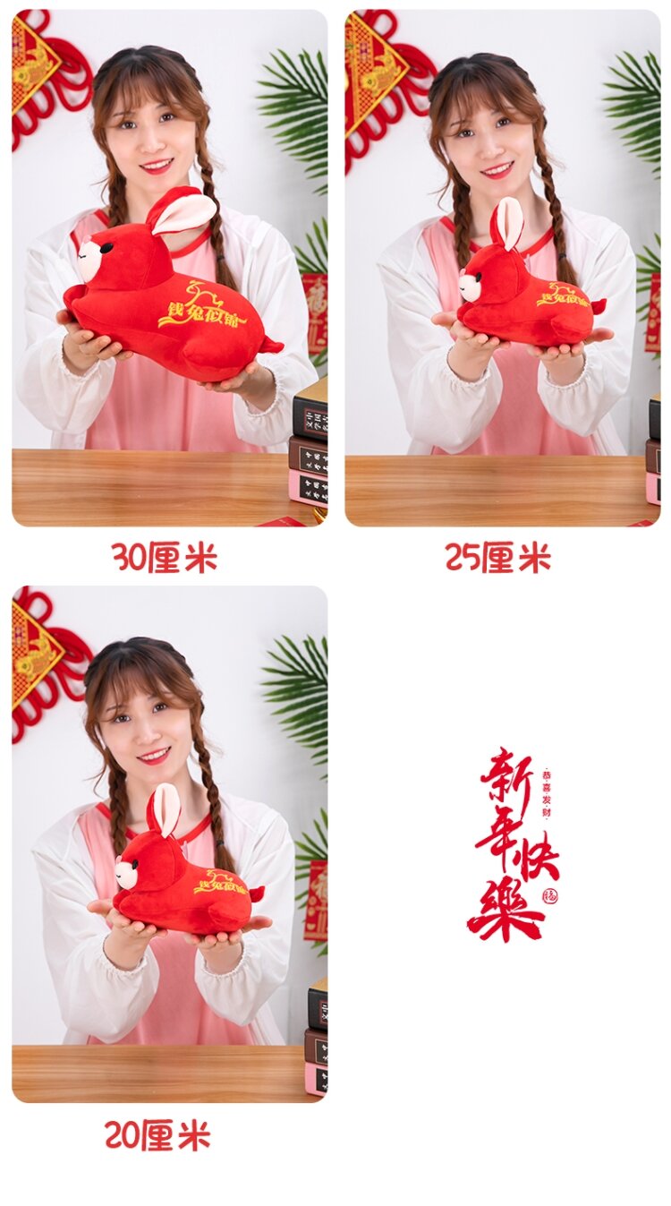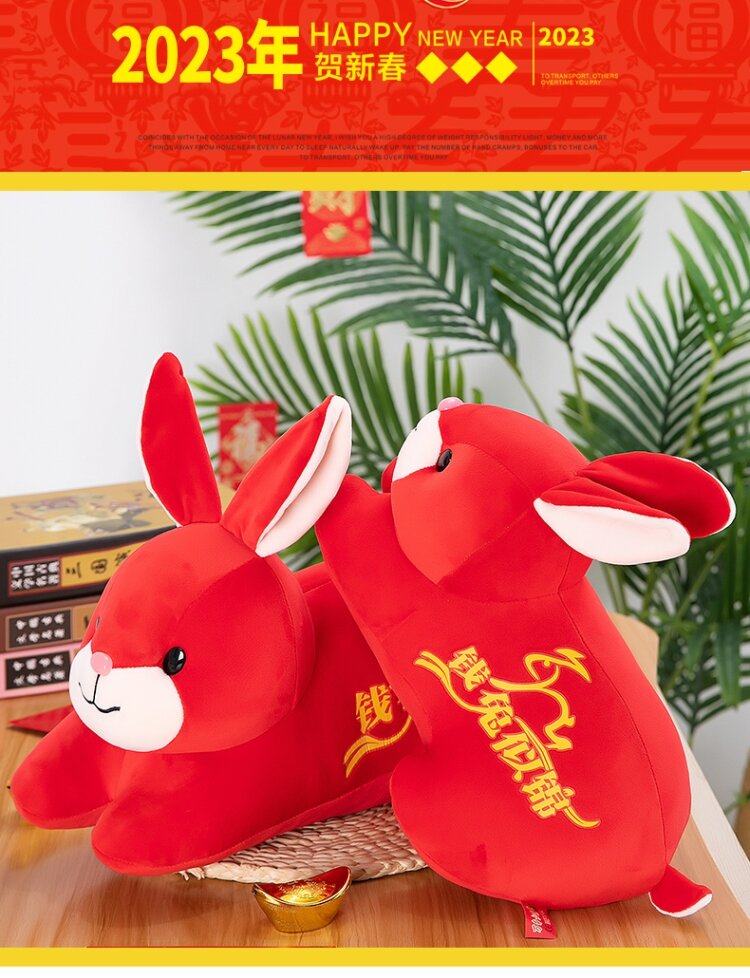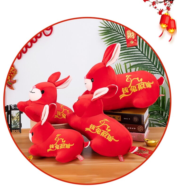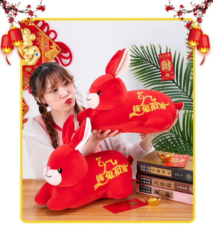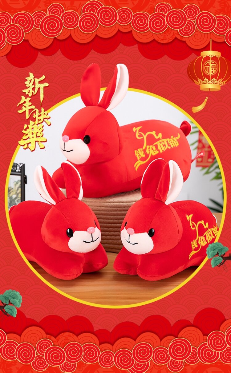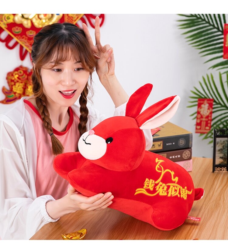 Simulation Small Lying Rabbit Red Plush Toy Rabbit Doll Annual Meeting Mascot Chinese Zodiac Sign of Rabbit Doll Annual Meeting Activity