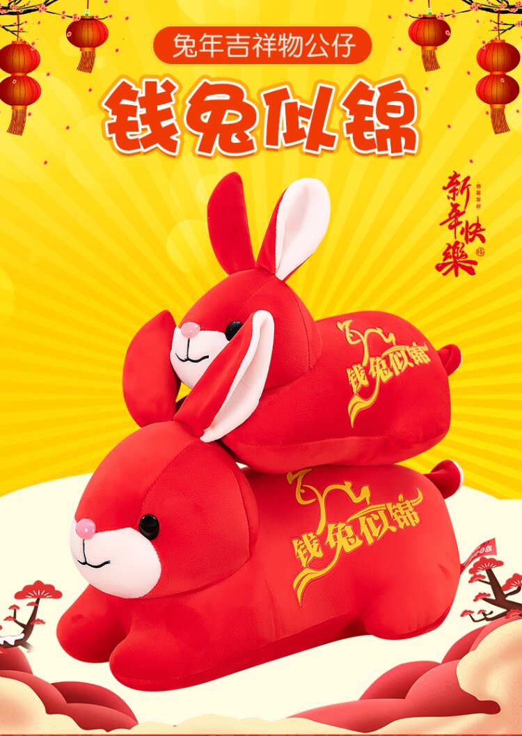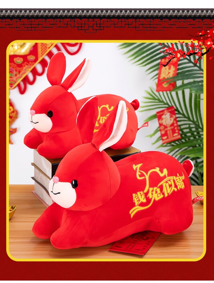 Year of Rabbit Mascot Doll Plush Toys Simulation Small Lying Rabbit Doll Kindergarten Class Meeting Annual Meeting Activity Gift
