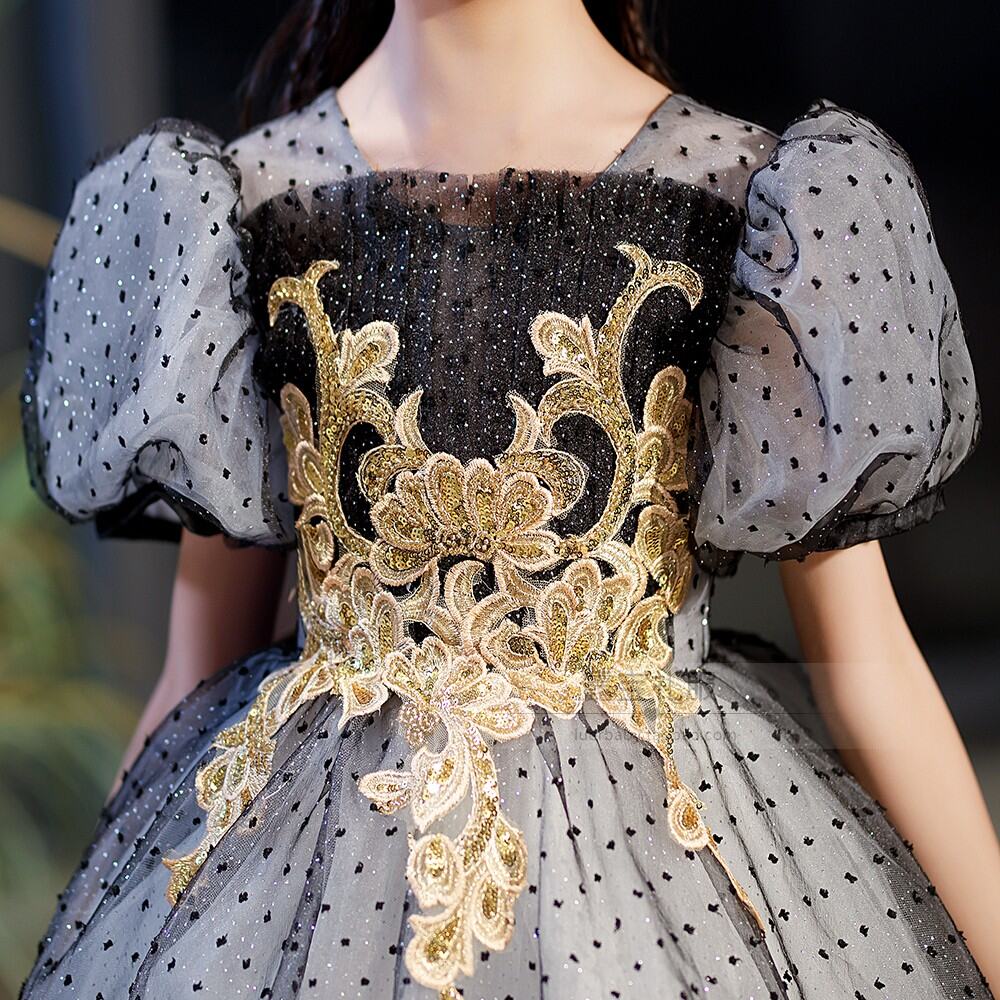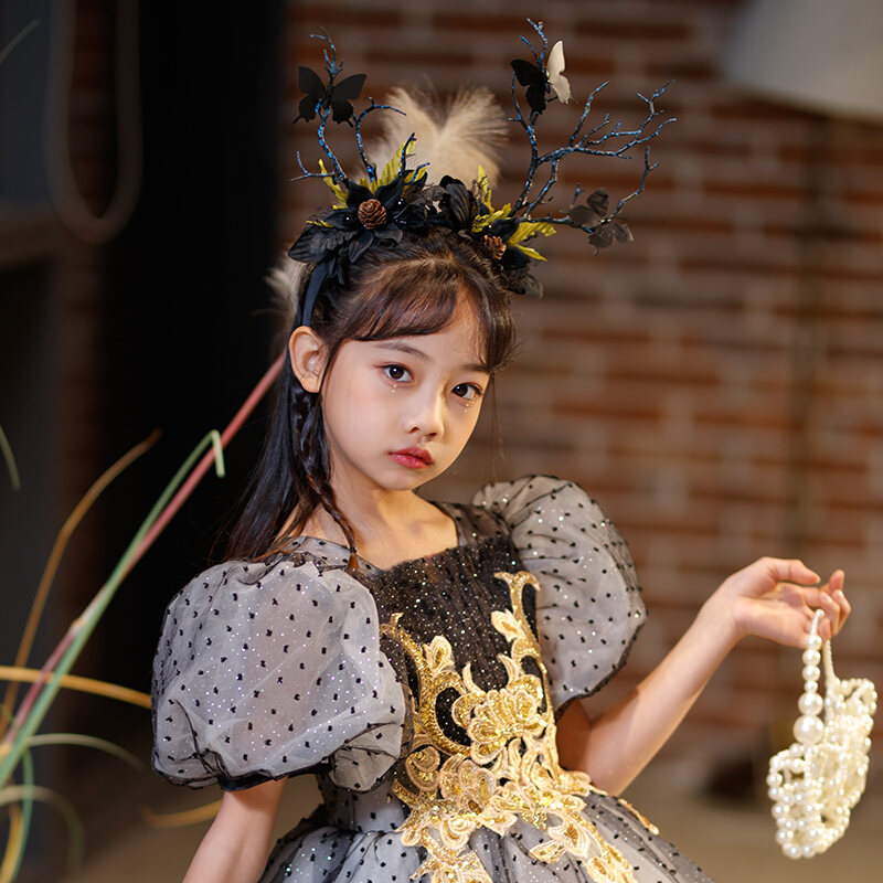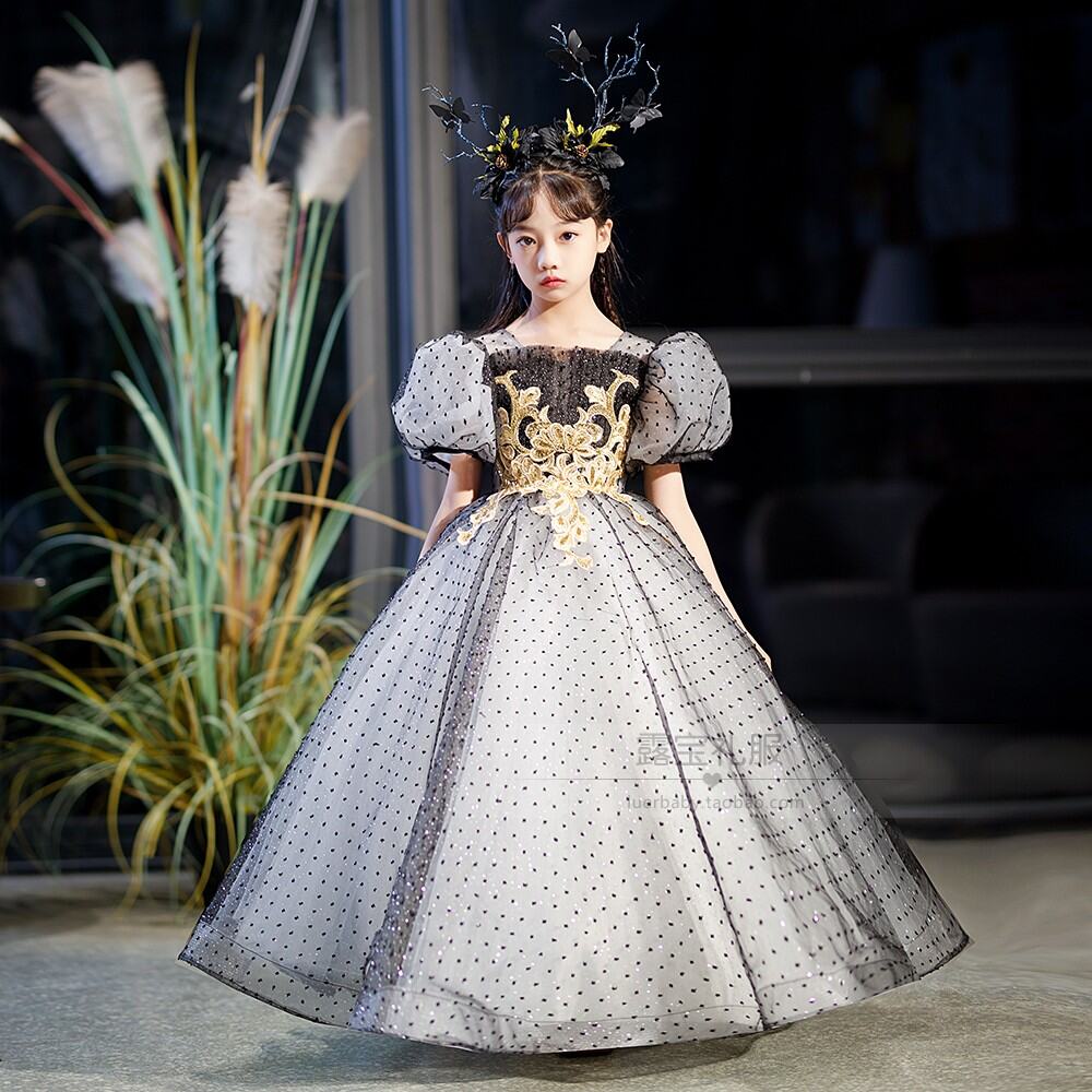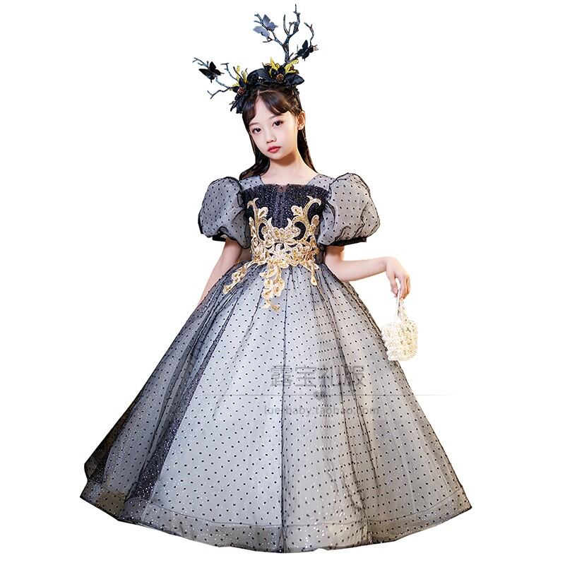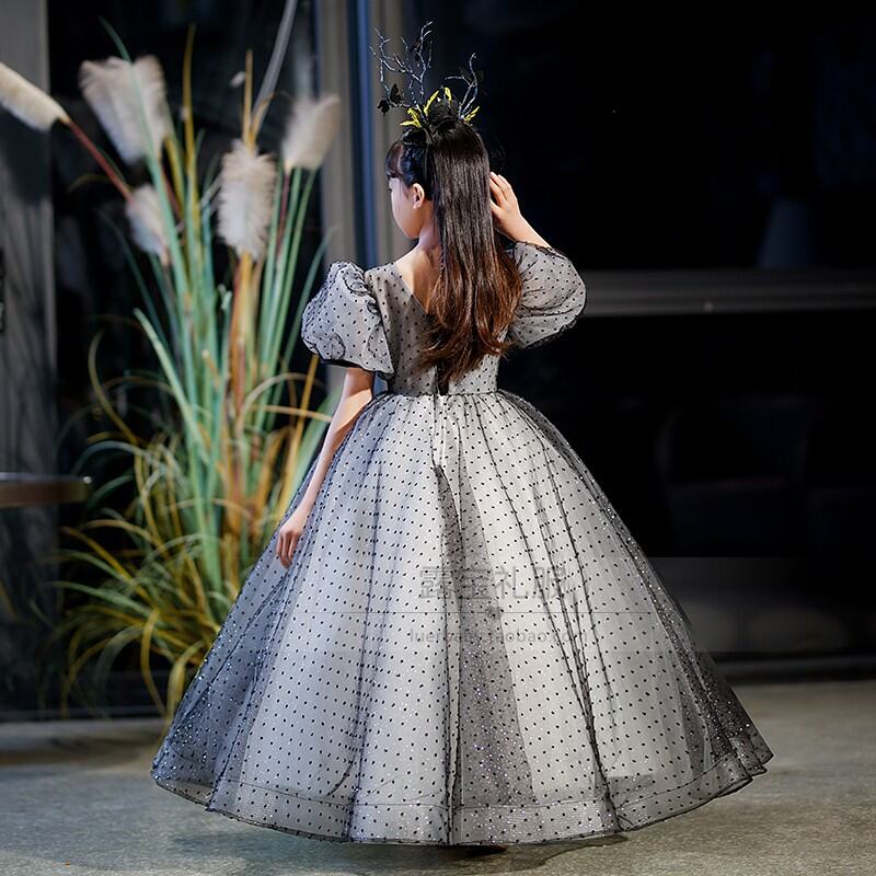 Black High-End Korean Style Mori Style Children's Evening Dress Girl Princess Dress Little Host Piano Singing Costume