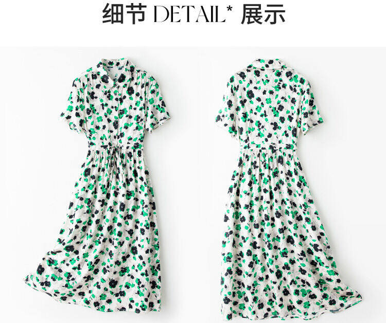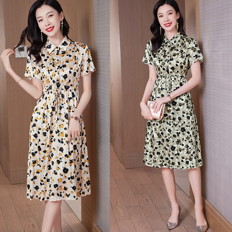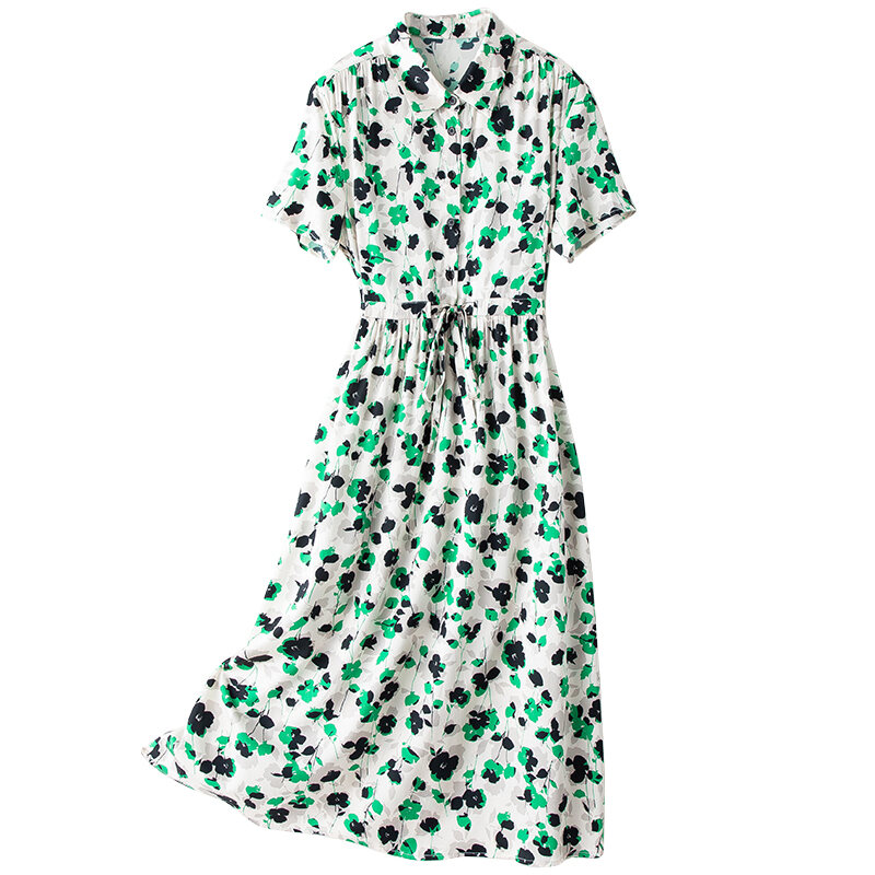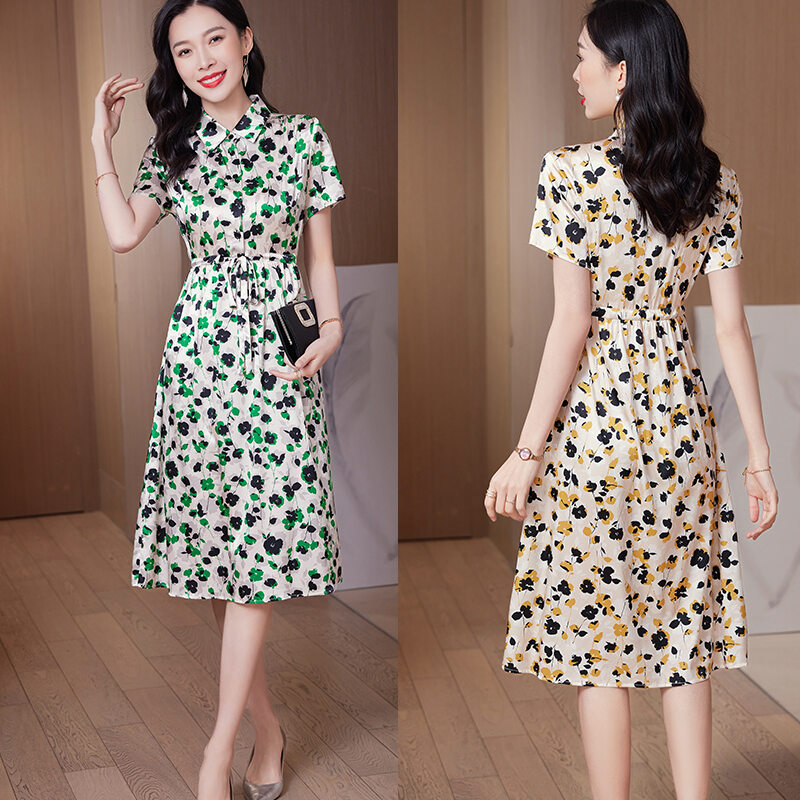 High-End Doll Collar Dress Summer Artistic Elegant Gentle Retro Printed Silk Shirt Dress