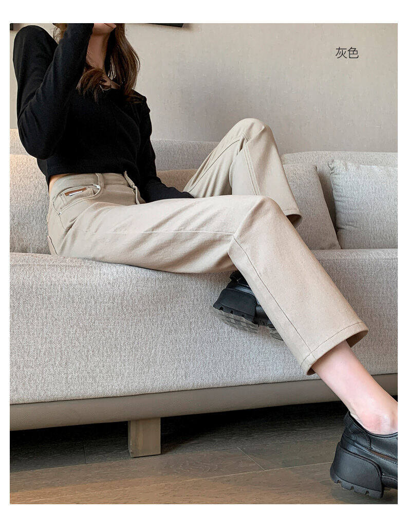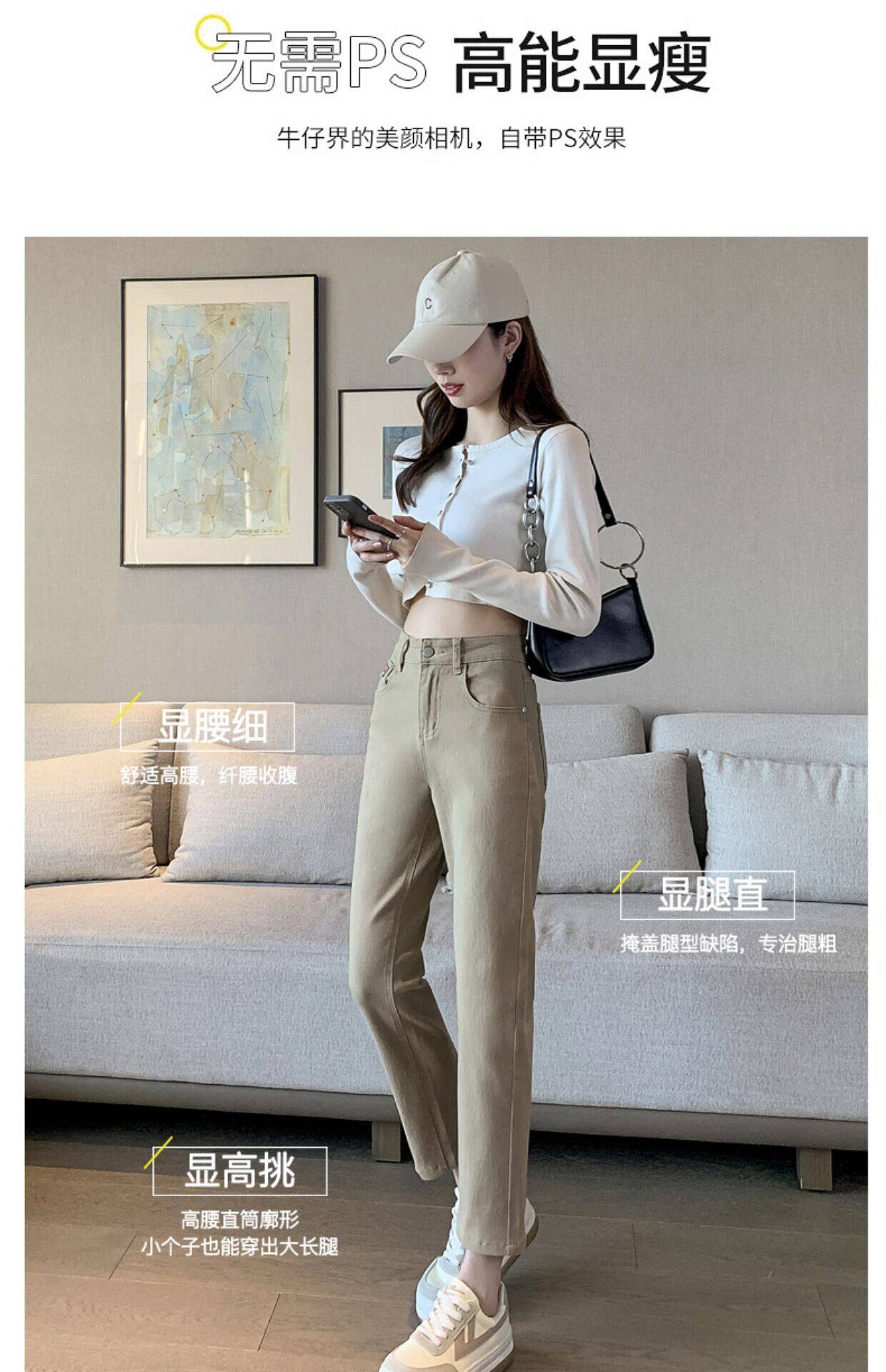 La Chebel White Straight-Cut Jeans Women's Ankle-Length Pants Spring and Autumn 2023 New Loose Pants Casual Cigarette Pants