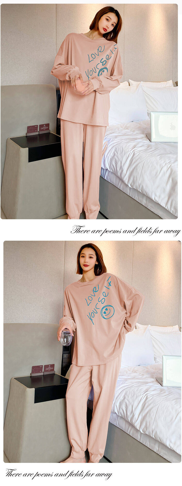 2022 Spring New Large Size Pajamas Women's Printed round Neck Long-Sleeve Suit plus and Extra Size Can Be Outerwear Homewear