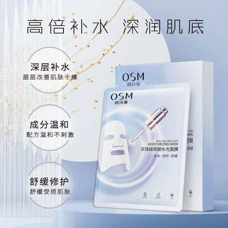 OSM Pearl Hyaluronic Acid Water Light Facial Mask Moisturizing Soothing Repair Moisturizing Brightening Flesh Color BOY'S and GIRL'S