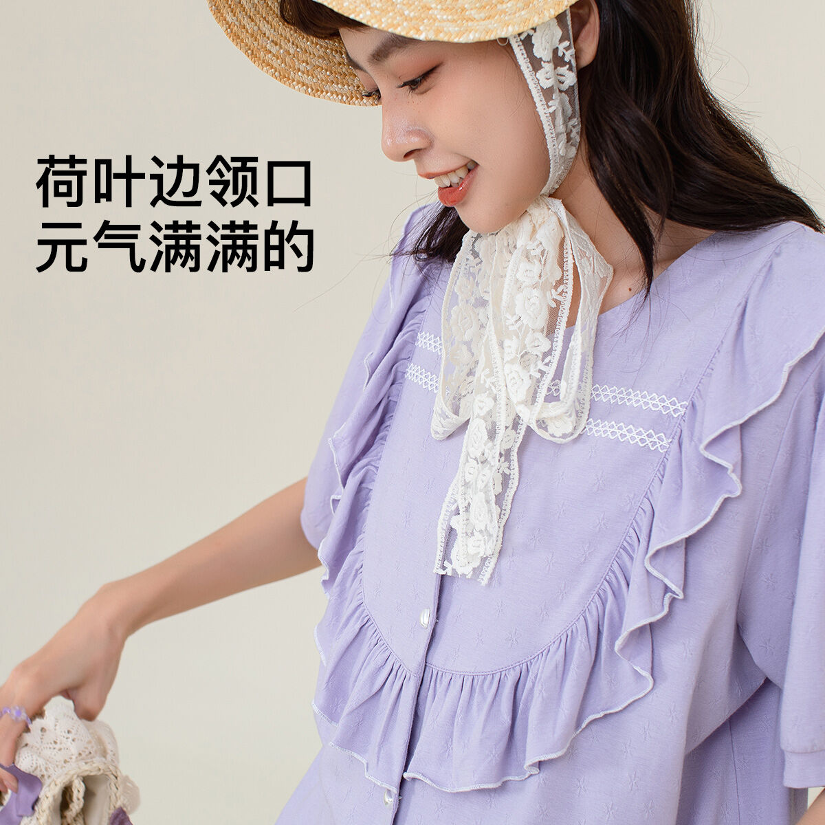 Linka Pajamas Women's Summer Cardigan Short Sleeve 2023 New Sweet Summer Women's Outerwear Homewear Suit