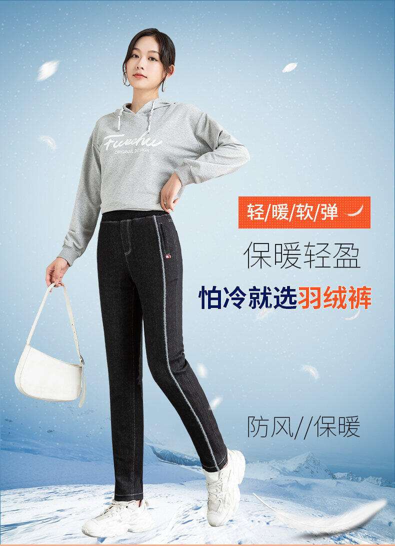 La Chabell Denim down Pants Women's Outer Wear High Waist Thickened White Duck down Winter Fashion Women's Cotton Pants Pencil Pants