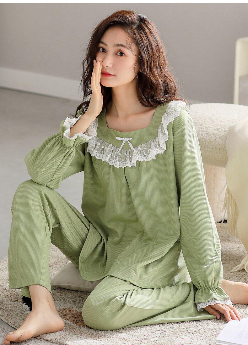 Pajamas Women's Pure Cotton Long Sleeve 2022 Spring and Autumn Can Be Outerwear Homewear Minimalist Autumn Mother Large Size Suit