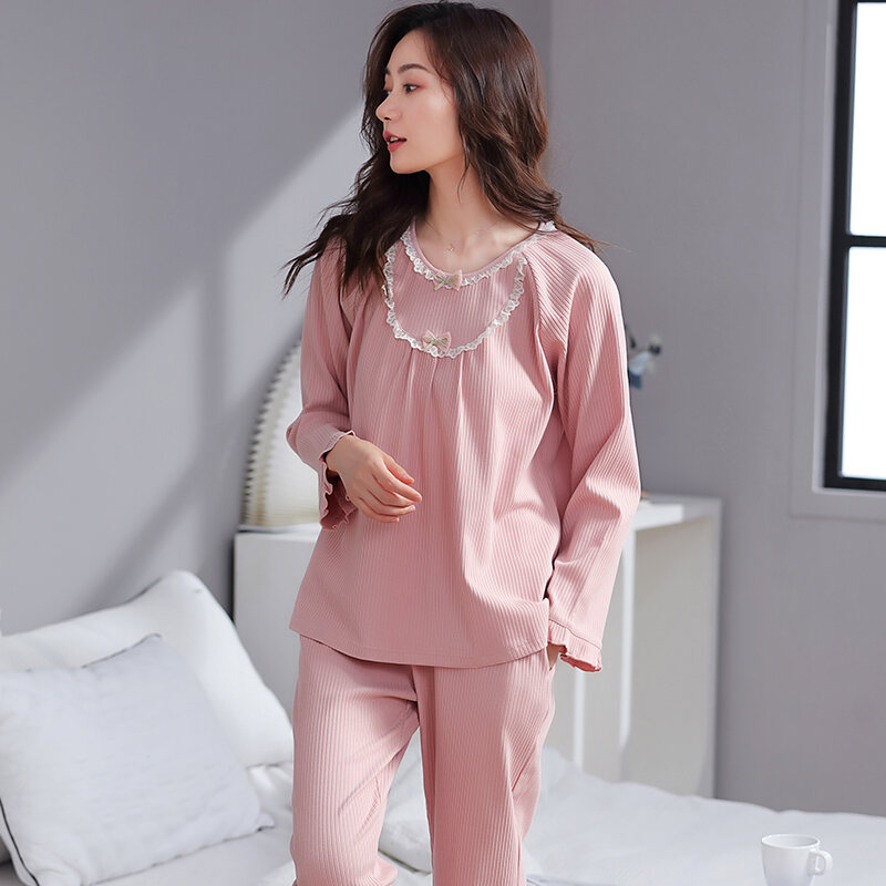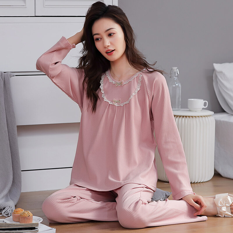 Pajamas Women's Pullover Spring and Autumn Fall Pure Cotton Long Sleeve Home Wear Middle-Aged Mom Pullover Casual Large Size Suit