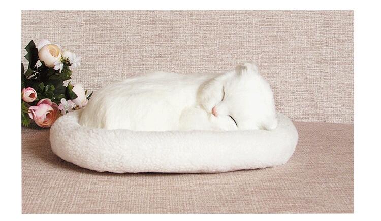 BREATHING CAT-The fake sleeping cat will begain to breathe when you turn on the switch at the bottom.The cat’s belly will move up and down.