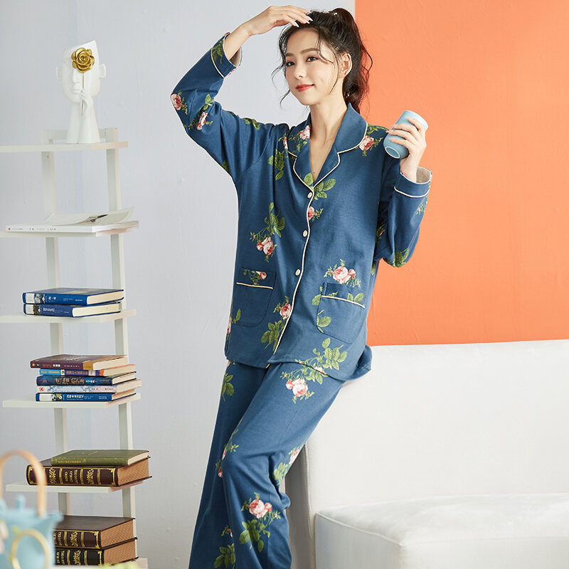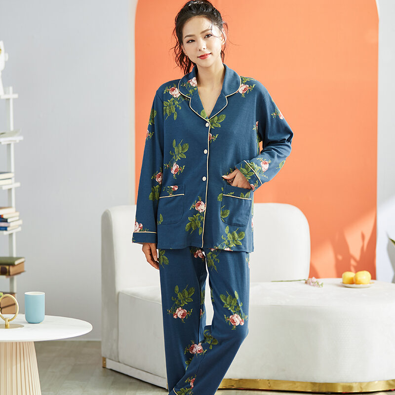 Pajamas Women's Spring and Autumn Long-Sleeved Lapel 2021 New Casual Printed Homewear New Mother Loose Outfit