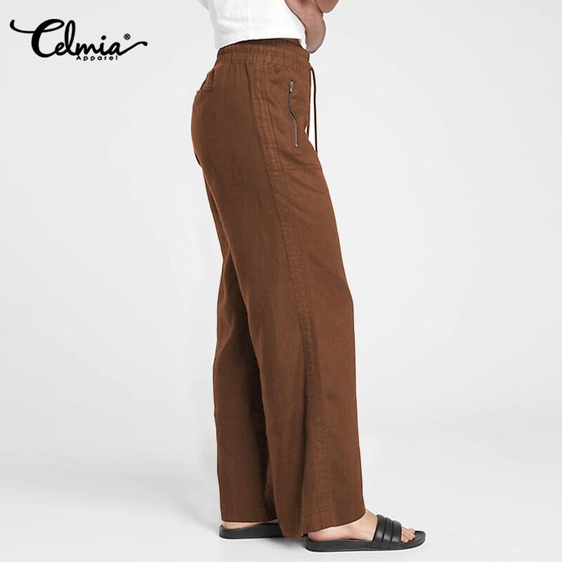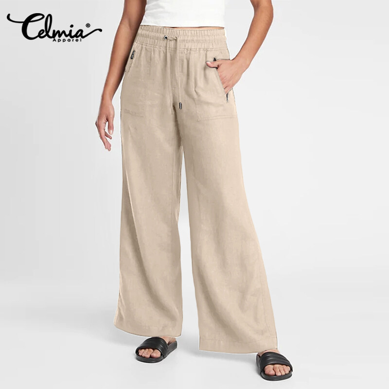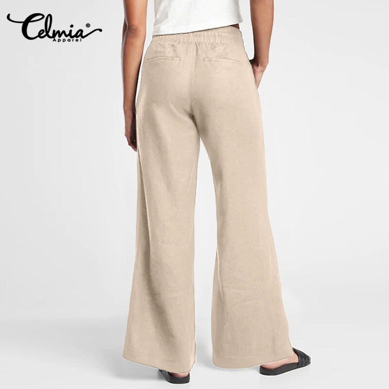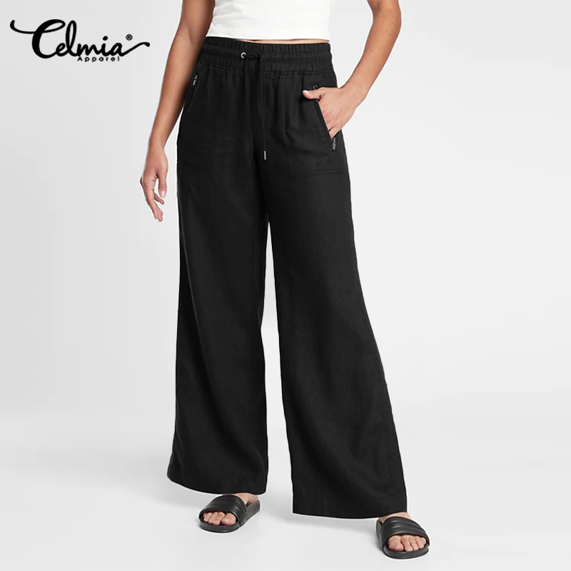 -Features:European and American daily elastic waist pockets straight loose casual pants