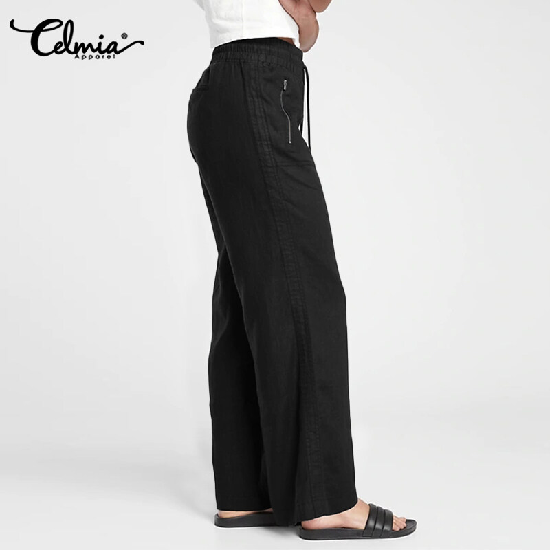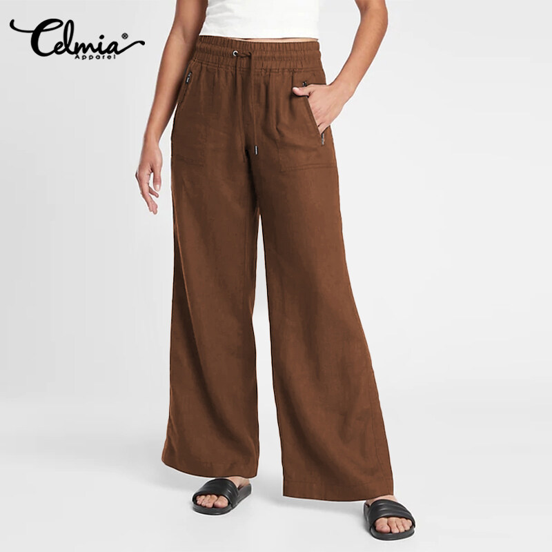 -Features:European and American daily elastic waist pockets straight loose casual pants