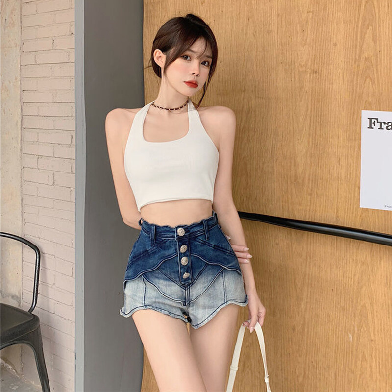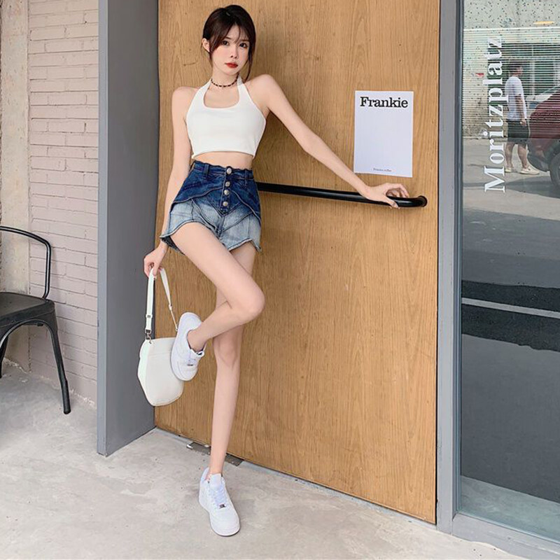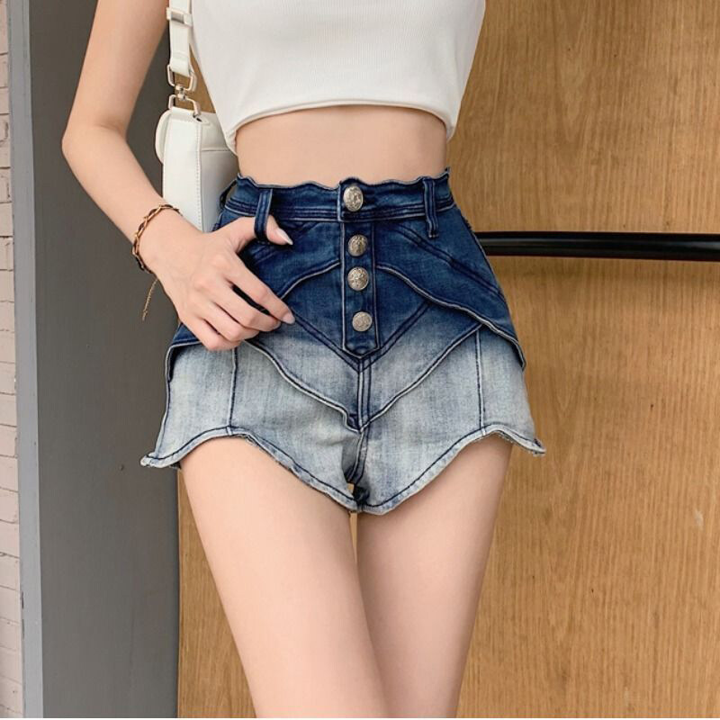 IELGY gradient color design wide-leg denim shorts women's high waist straight casual hot pants
