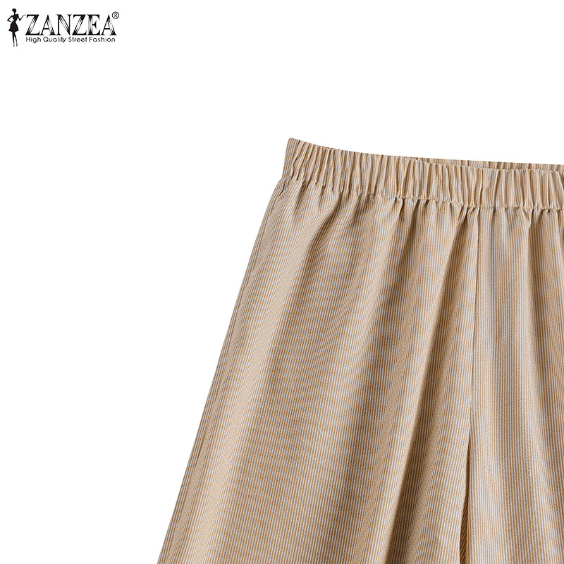ZANZEA Women's Casual Elastic Waist Trousers Holiday Baggy Striped Printed Pants High Waist For Women #15